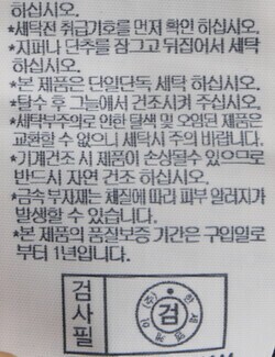 6. 세탁방법 및 취급시 주의사항 상품상세참조