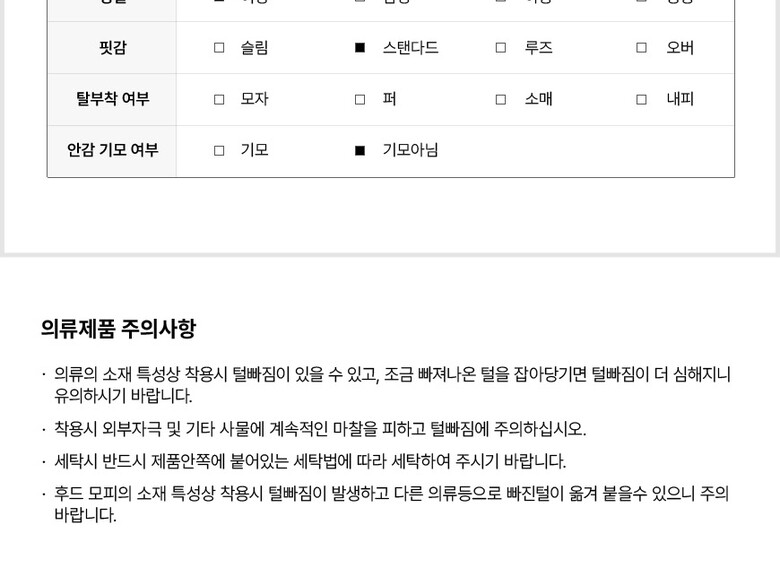 • 처음 배송된 상품상태와 다를 경우(세탁/착용 후 외출하신 경우) 반품이 불가합니다.