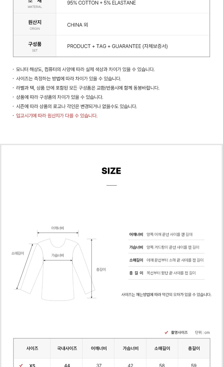1. 제품 소재 (섬유의 조성 또는 혼용률을 백분율로 표시, 기능성인 경우 성적서 또는 허가서) | 코튼 95% + 엘라스테인 5% |