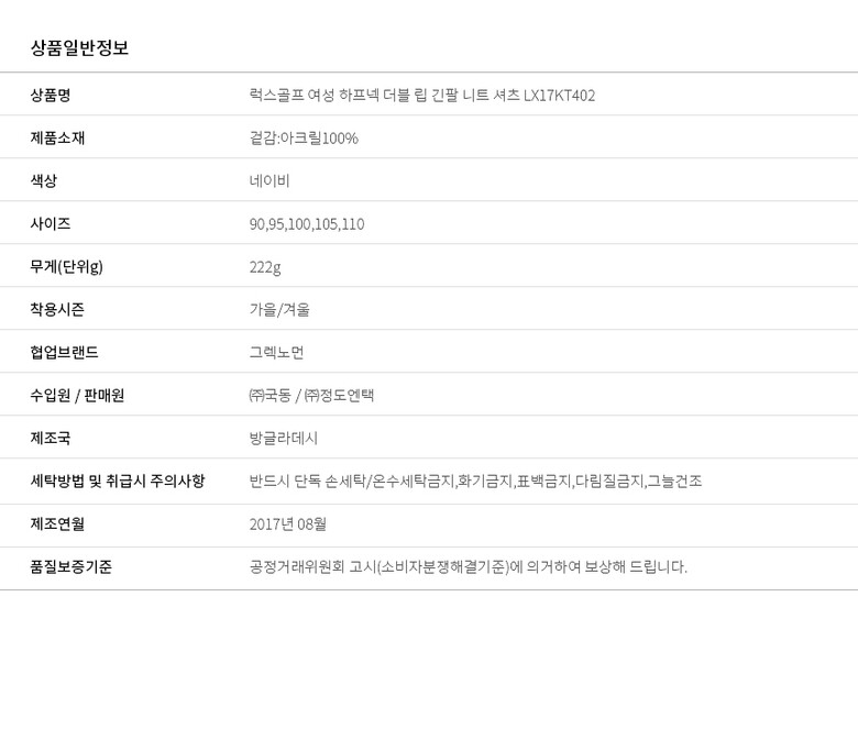 상품불량에 의한 반품, A/S, 품질보증 및 피해보상 등에 관한 사항은 소비자 분쟁해결기준(공정거래위원회 고시) 구매자가 미성년자인 경우에는 상품 구입시 법정대리인이 동의하지 아니하면 미성년자 본인 또는 법정대리인이 구매취소 할 수 있습니다. |