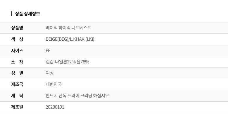 2. 색상 색상:BEIGE(BEG)/L.KHAKI(LKI)