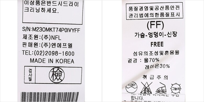 • 처음 배송된 상품상태와 다를 경우(세탁/착용 후 외출하신 경우) 반품이 불가합니다.
