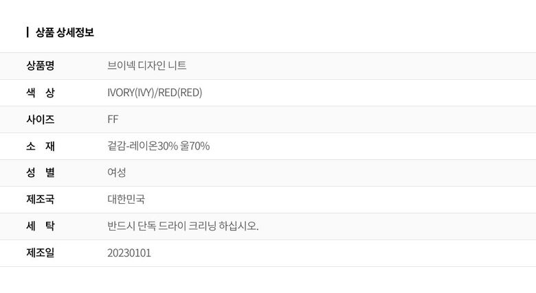 2. 색상 색상:IVORY(IVY)/RED(RED)