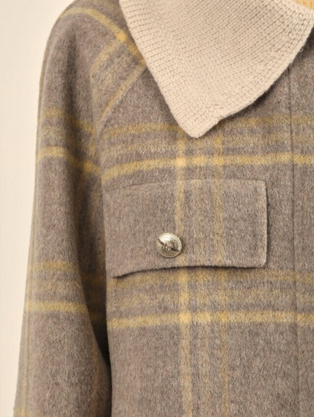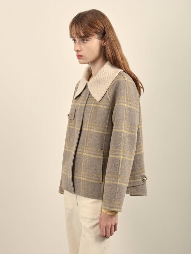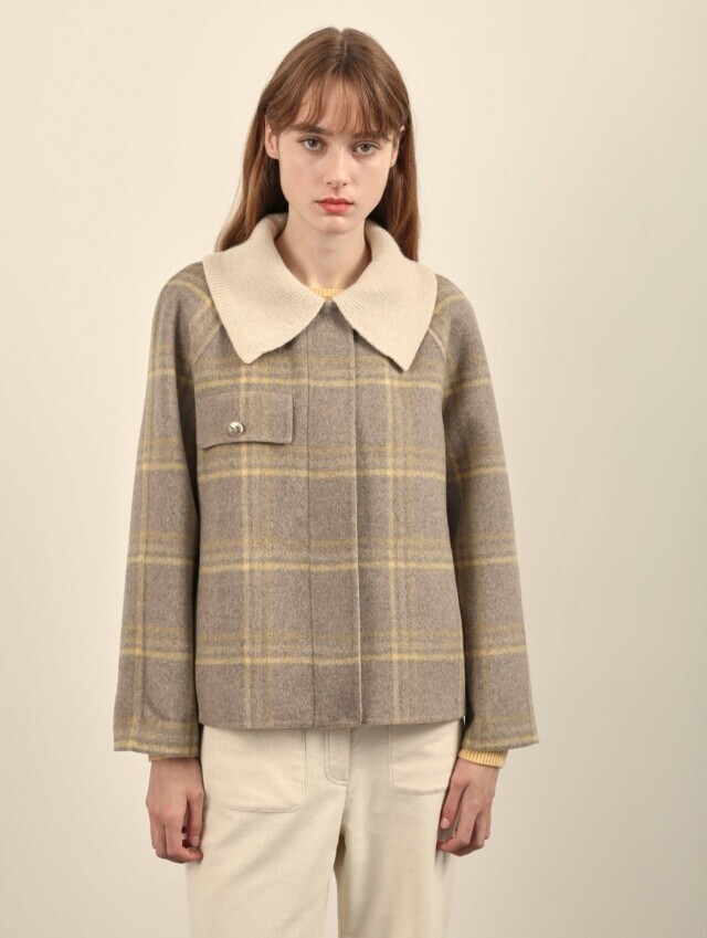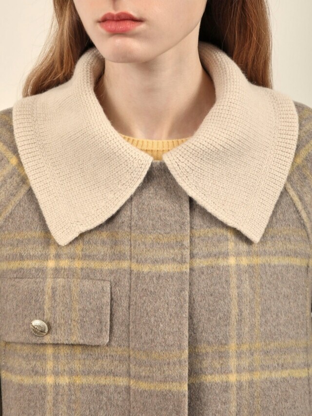 [올리비아로렌]니트카라 체크 핸드자켓VOCFU4W9431