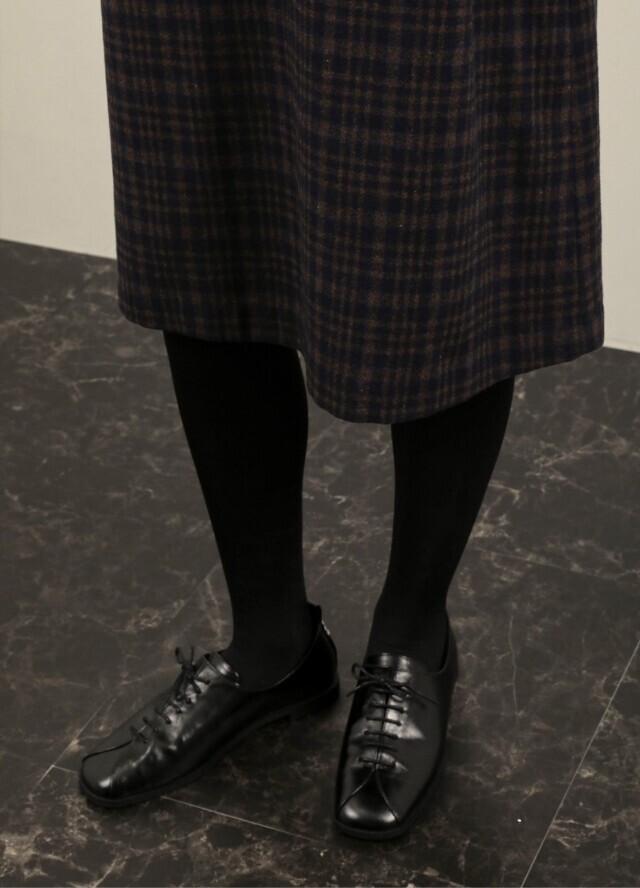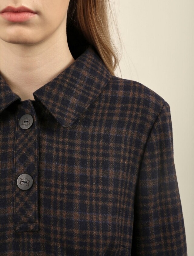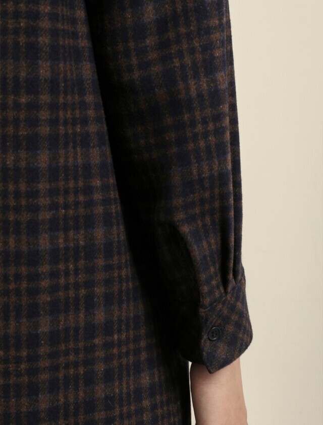 잔잔한 컬러감의 체크 패턴에 장식 단작으로