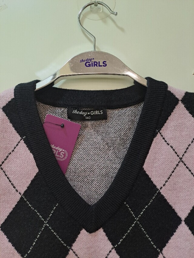 더데이걸|*|아가일 브이넥 조끼|*|요즘 아이들이 편안하게 입을 수 있는 크롭 조끼 제품입니다.