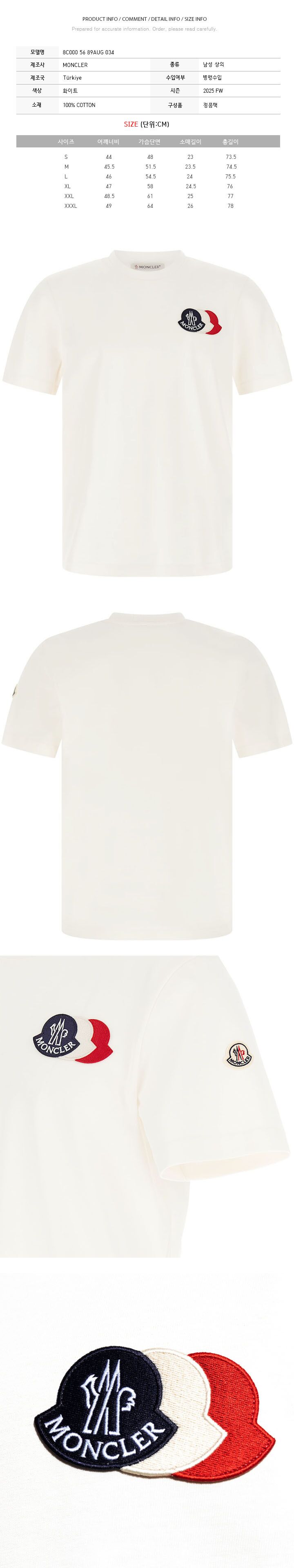 몽클레어 25FW 트리플 로고 패치 티셔츠 화이트 8C000 56 89AUG 034
