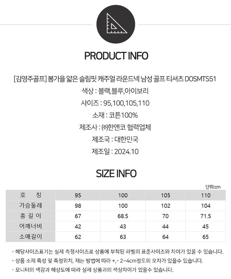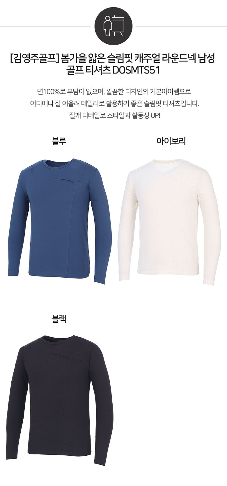 [김영주골프] 봄가을 얇은 슬림핏 캐주얼 라운드넥 남성 골프 티셔츠 DOSMTS51