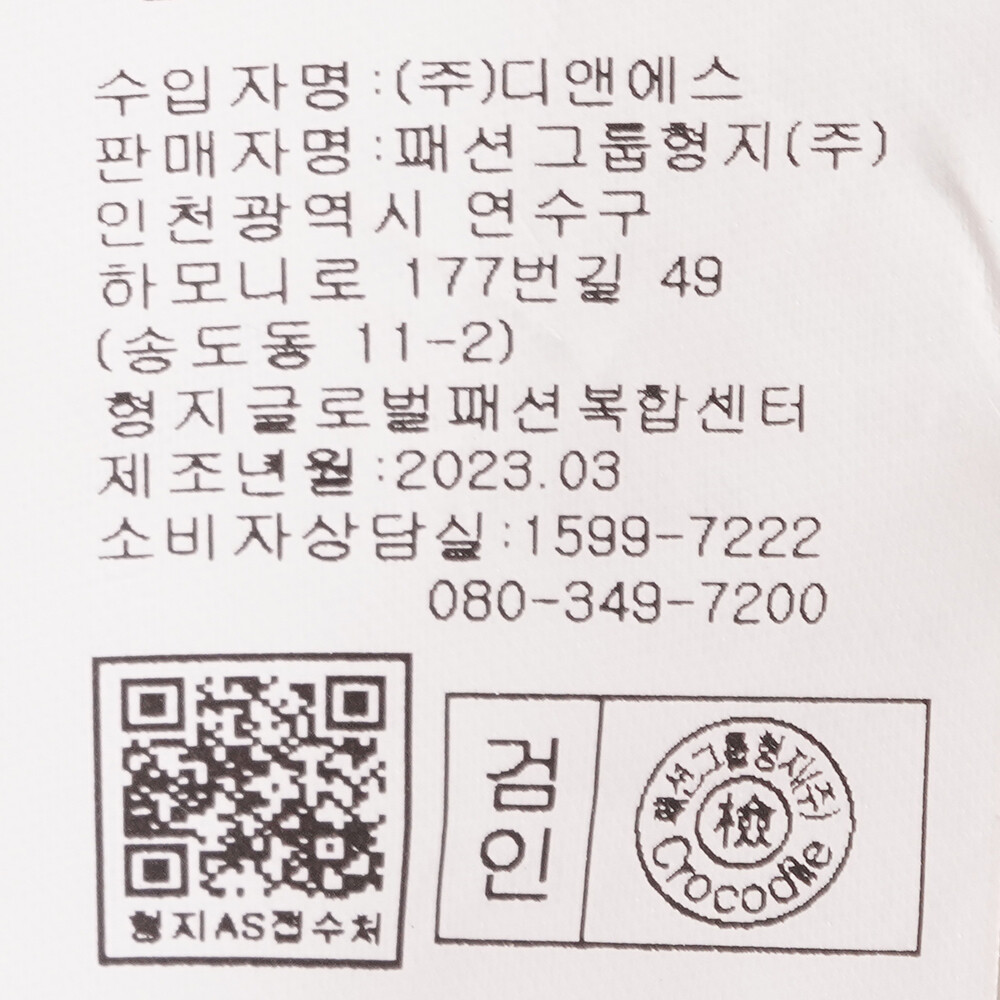 | 1. 제품 소재 (섬유의 조성 또는 혼용률을 백분율로 표시, 기능성인 경우 성적서 또는 허가서) | 상품상세참조 |