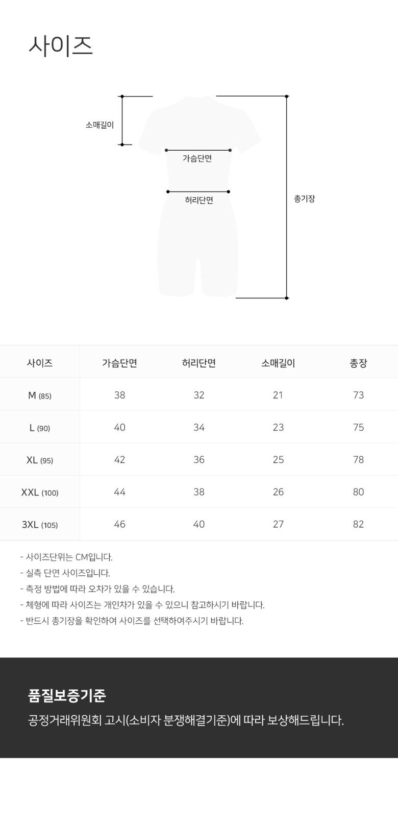 | 3. 치수 | M, L, XL, XXL, 3XL |