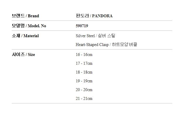 판도라 PANDORA 모먼트 하트 클래습 실버 여성 팔찌 590719