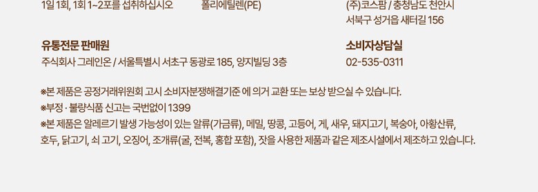 2. 생산자(수입자) | (주)코스팜 / 충청남도 천안시 서북고 성거읍 새터길 156 |