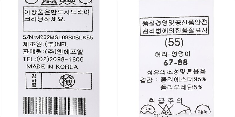 1. 제품 소재 (섬유의 조성 또는 혼용률을 백분율로 표시, 기능성인 경우 성적서 또는 허가서) | 겉감-폴리에스터95% 폴리우레탄5% |