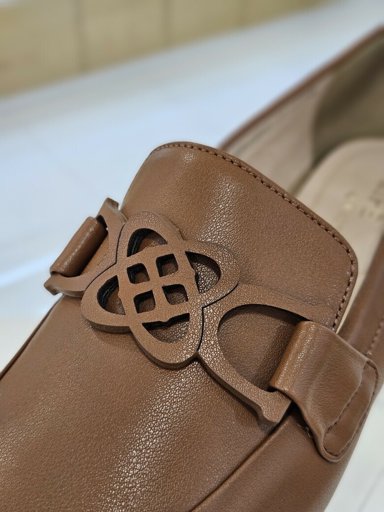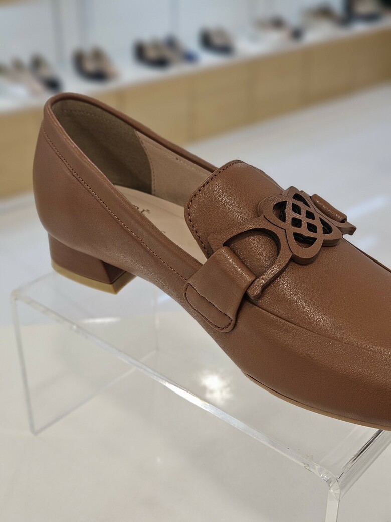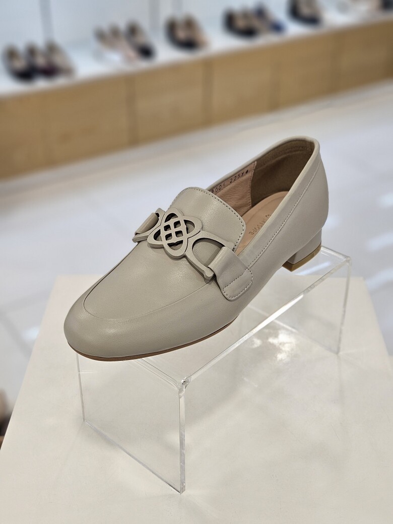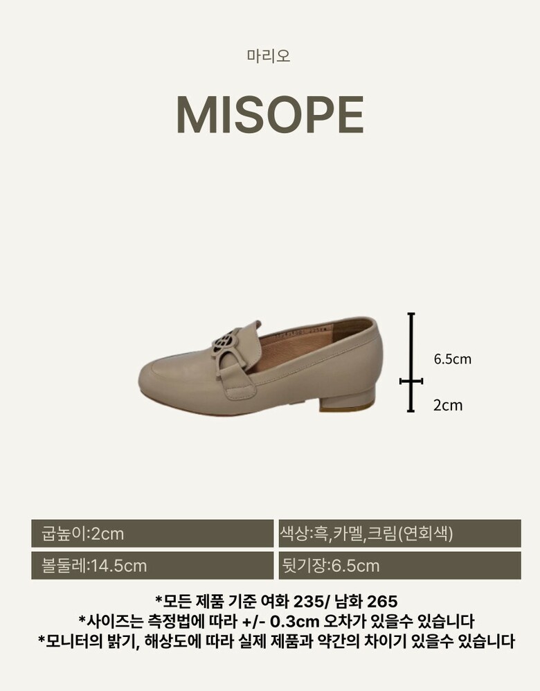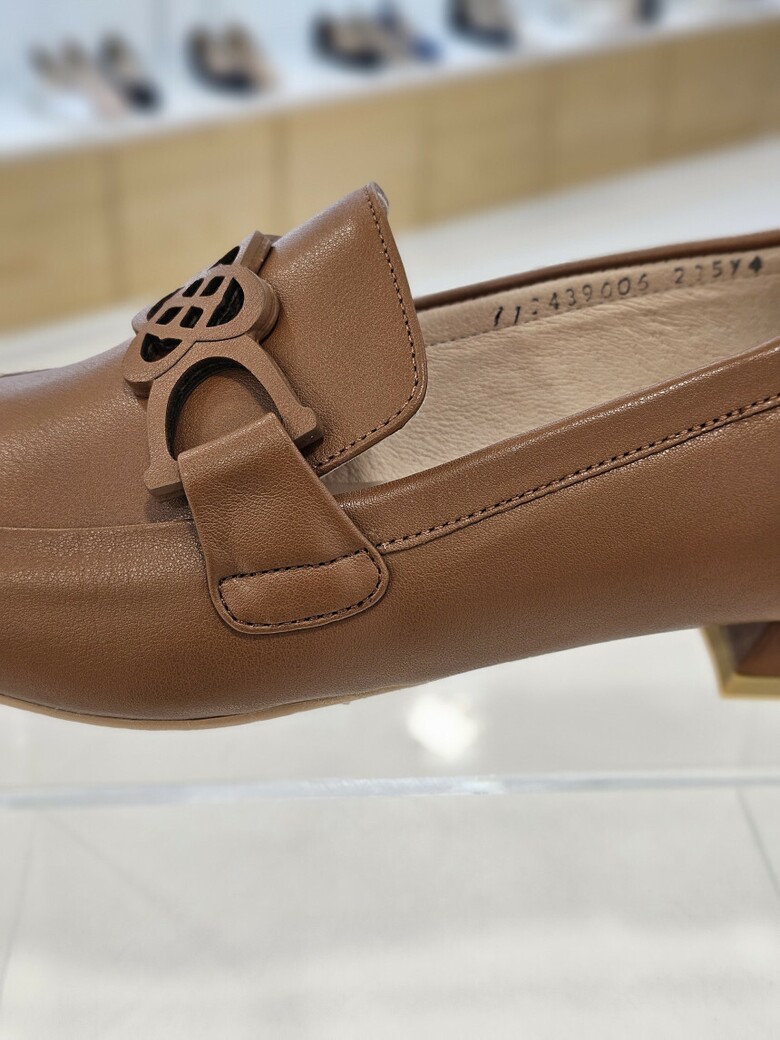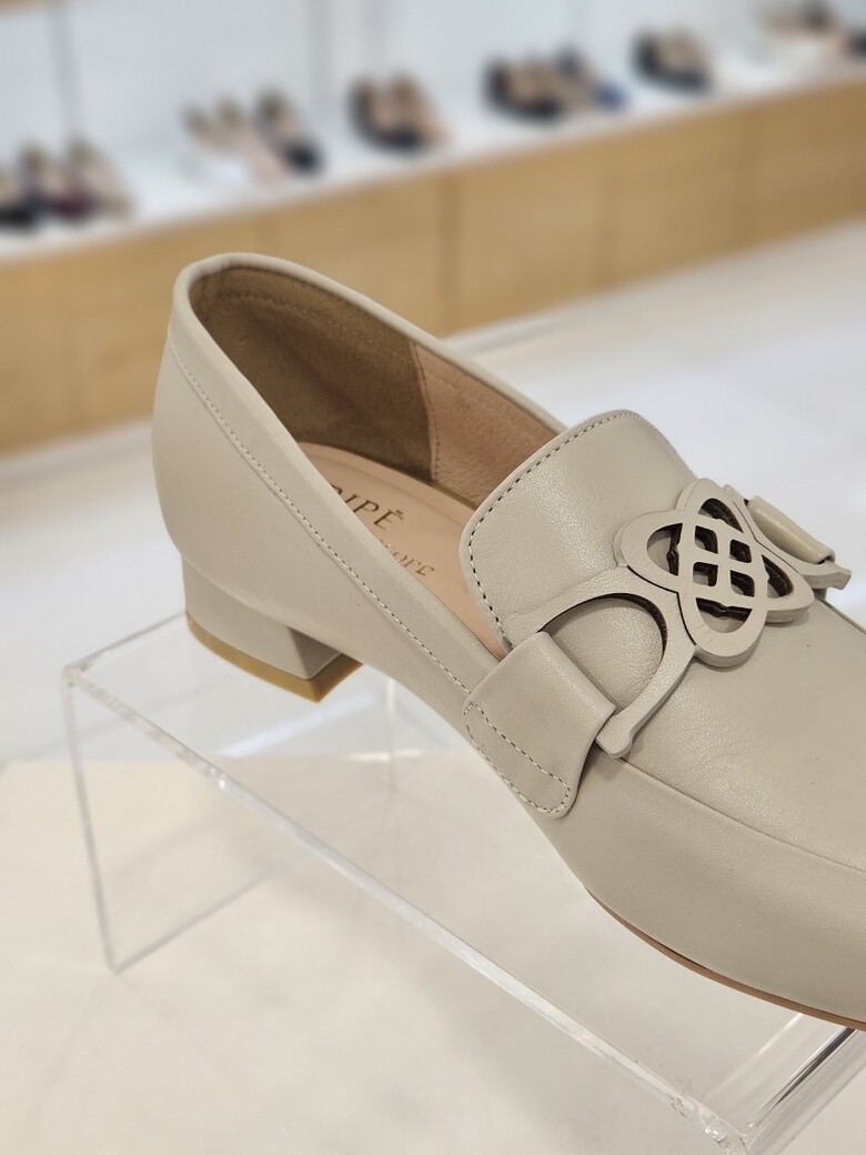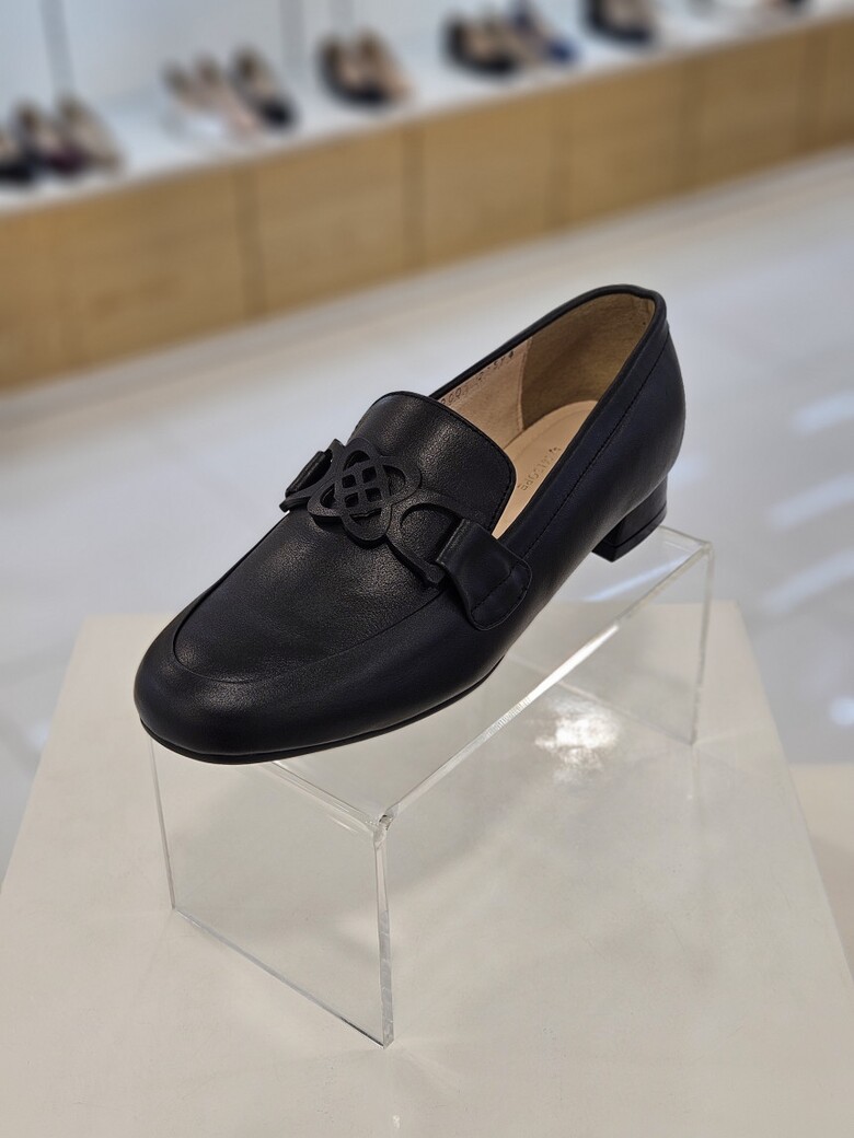 미소페 신규 심볼을 응용한 클래식한 무드의 가죽 등장식으로 포인트를 준 로퍼