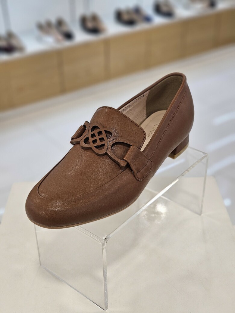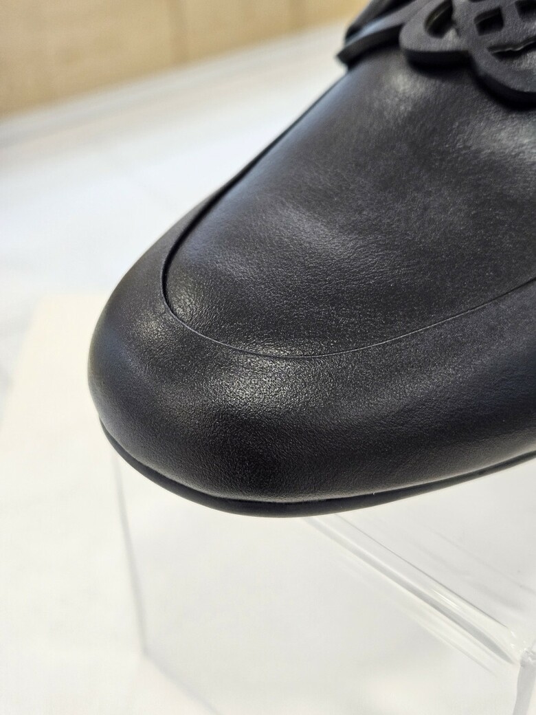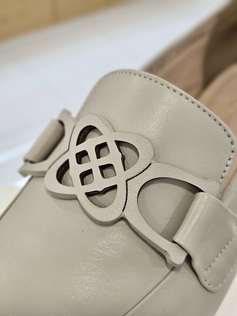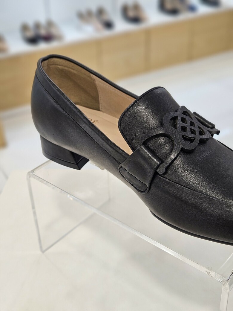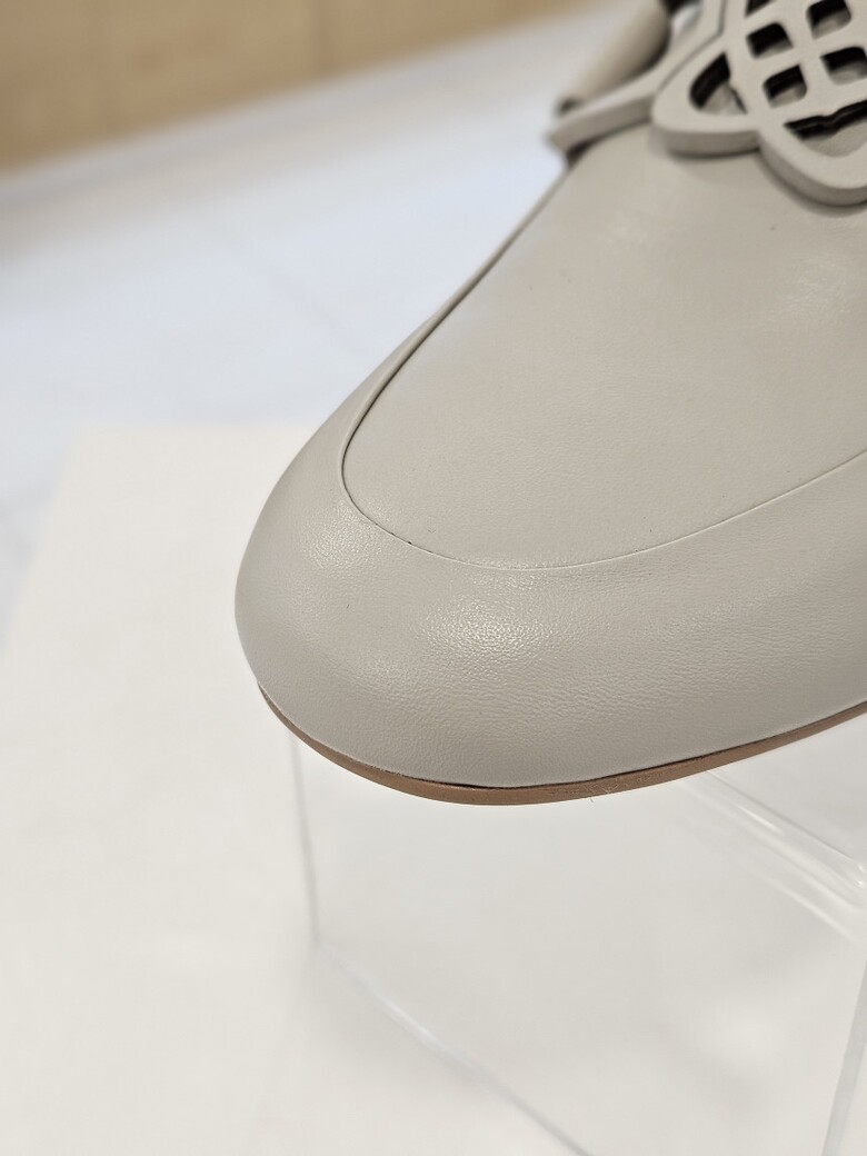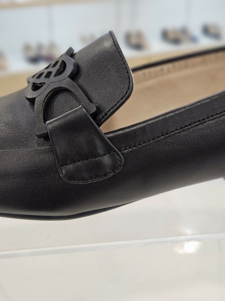 미소페 신규 심볼을 응용한 클래식한 무드의 가죽 등장식으로 포인트를 준 로퍼