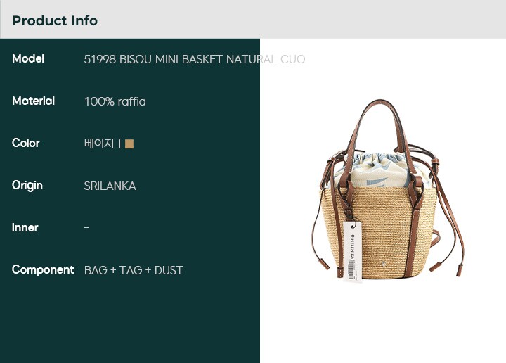 - #리본즈코리아 #51998BISOUMINIBASKETNATURALC #[명품] #25SS #51998 #BISOU #MINI #BASKET #NATURAL #CUO #여성 #토트백 #가방/핸드백