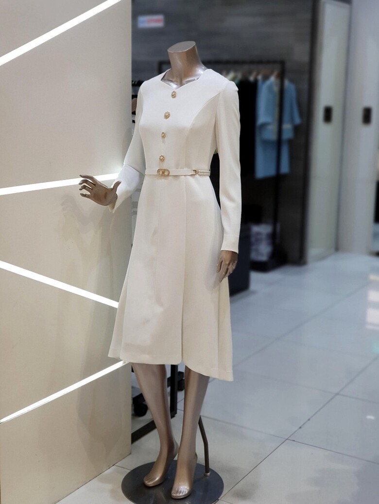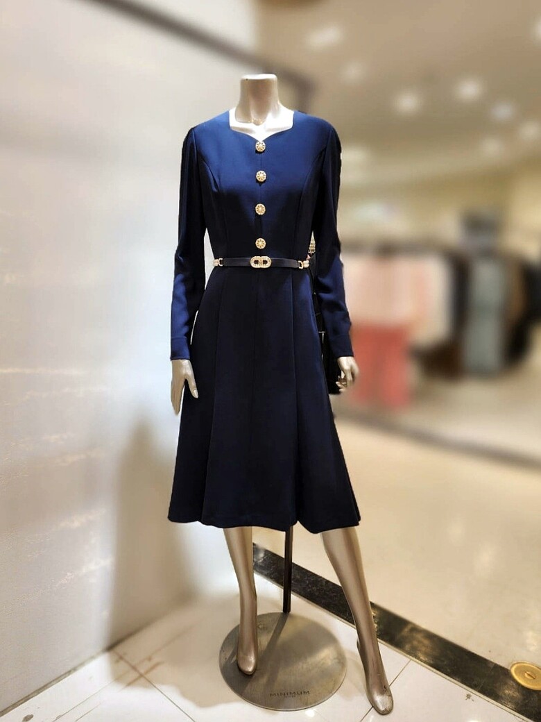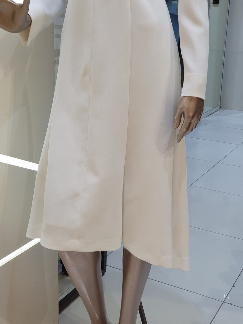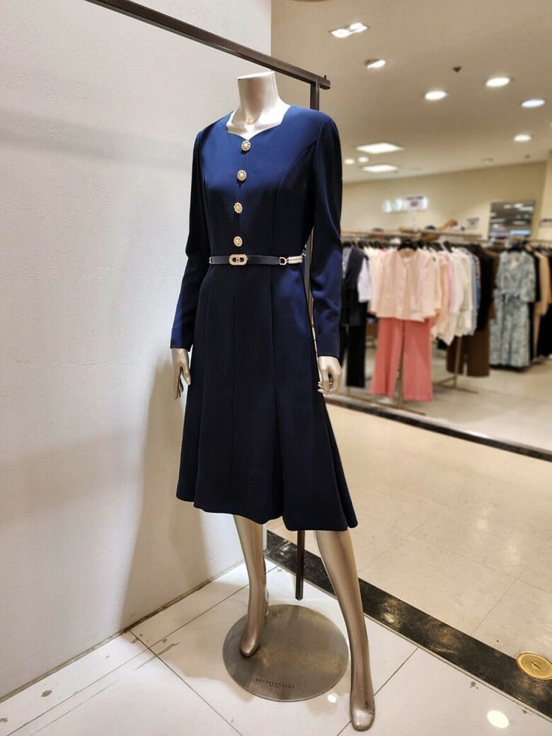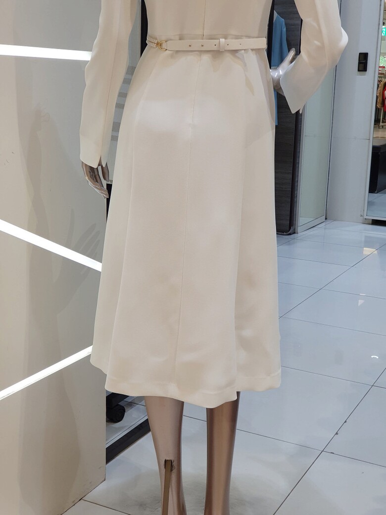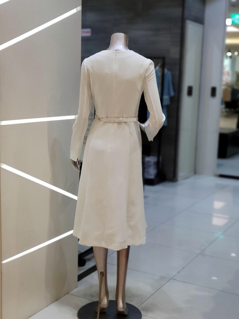 허리 라인을 잡아주면서 살짝 퍼지는 플레어 실루엣의