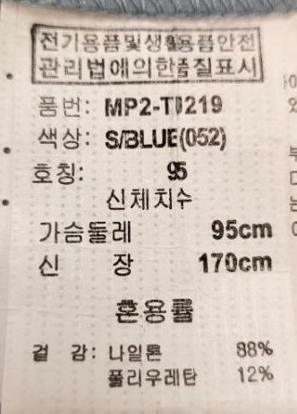 | 1. 제품 소재 (섬유의 조성 또는 혼용률을 백분율로 표시, 기능성인 경우 성적서 또는 허가서) | 상품상세참조 |