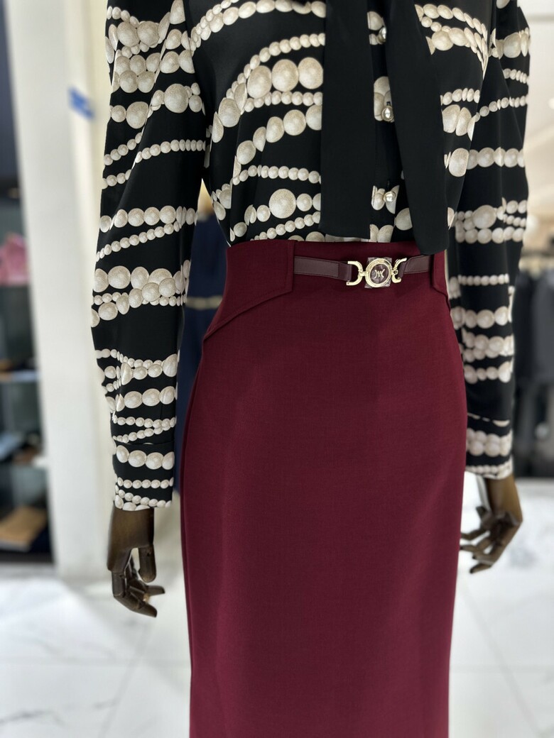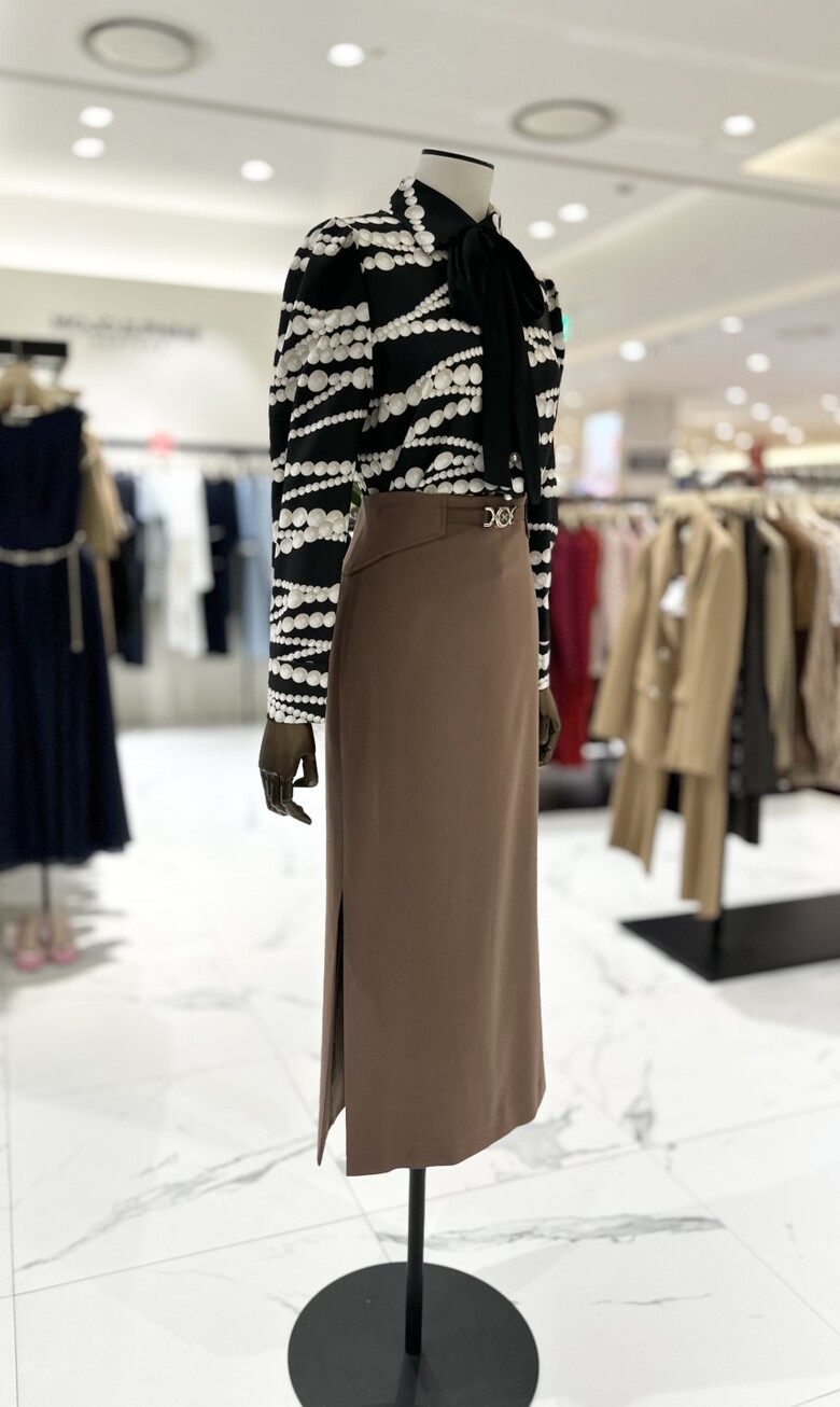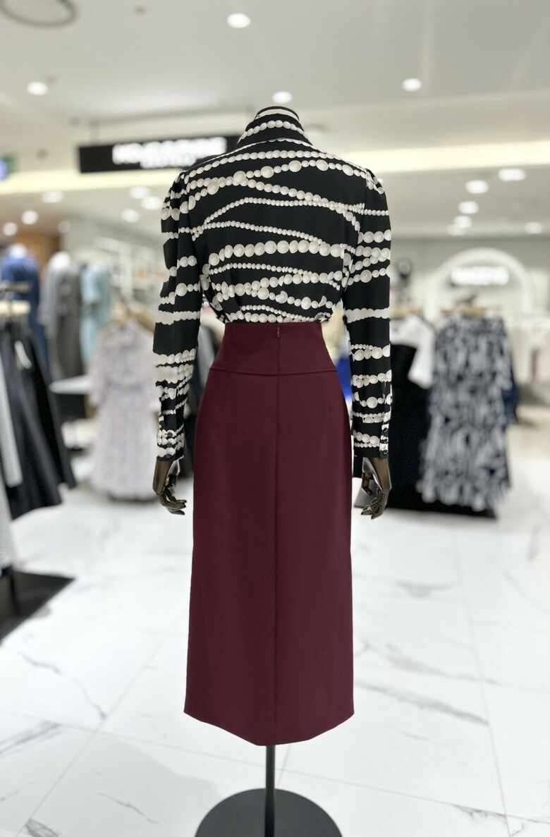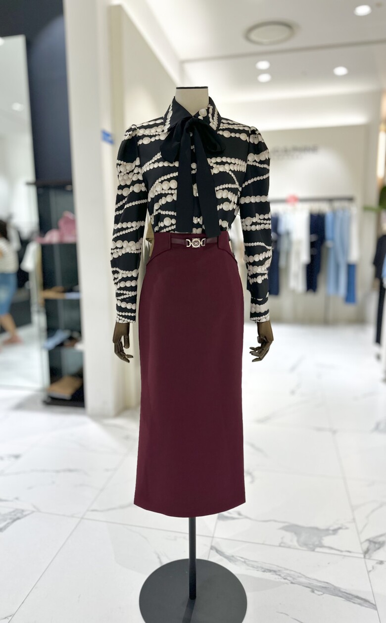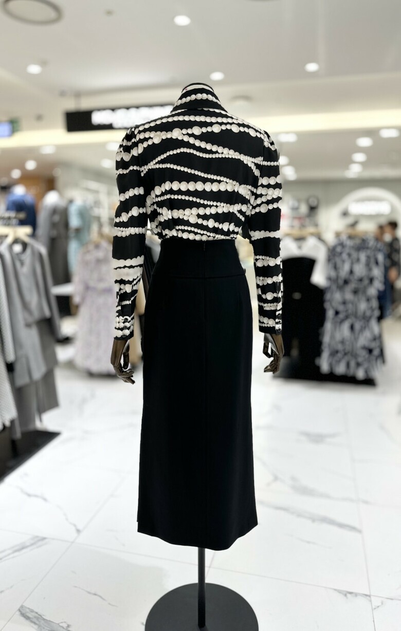 모조에스핀 진주 프린트 타이넥 블라우스 J243MSC019