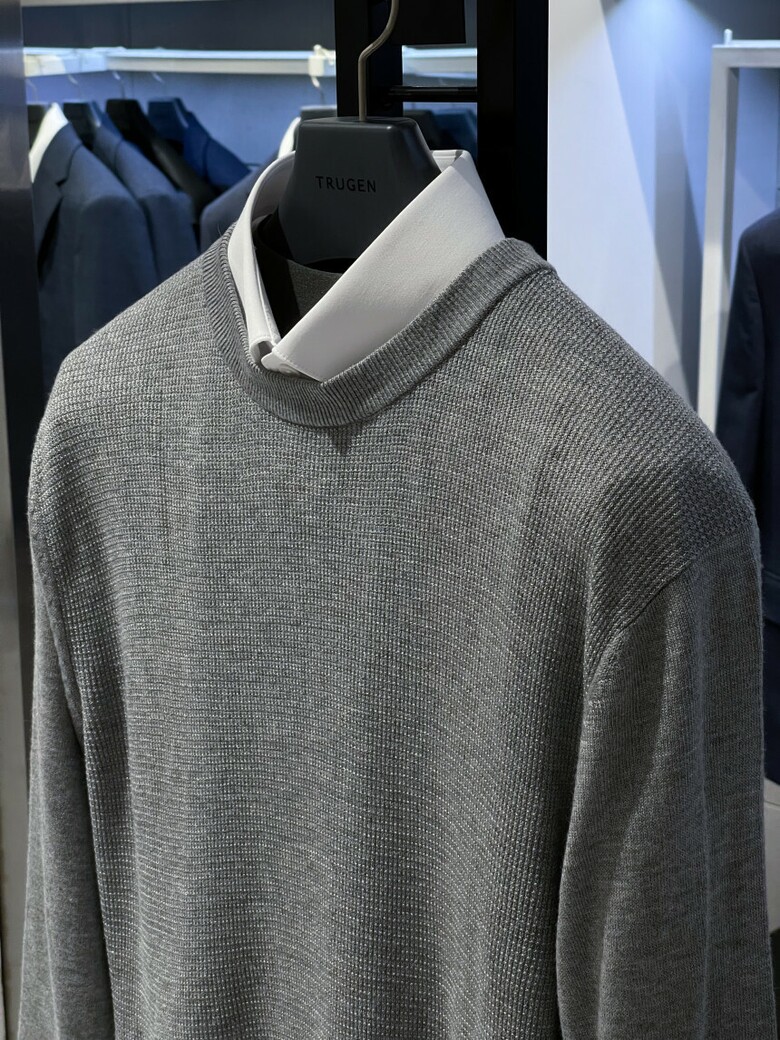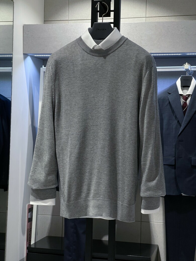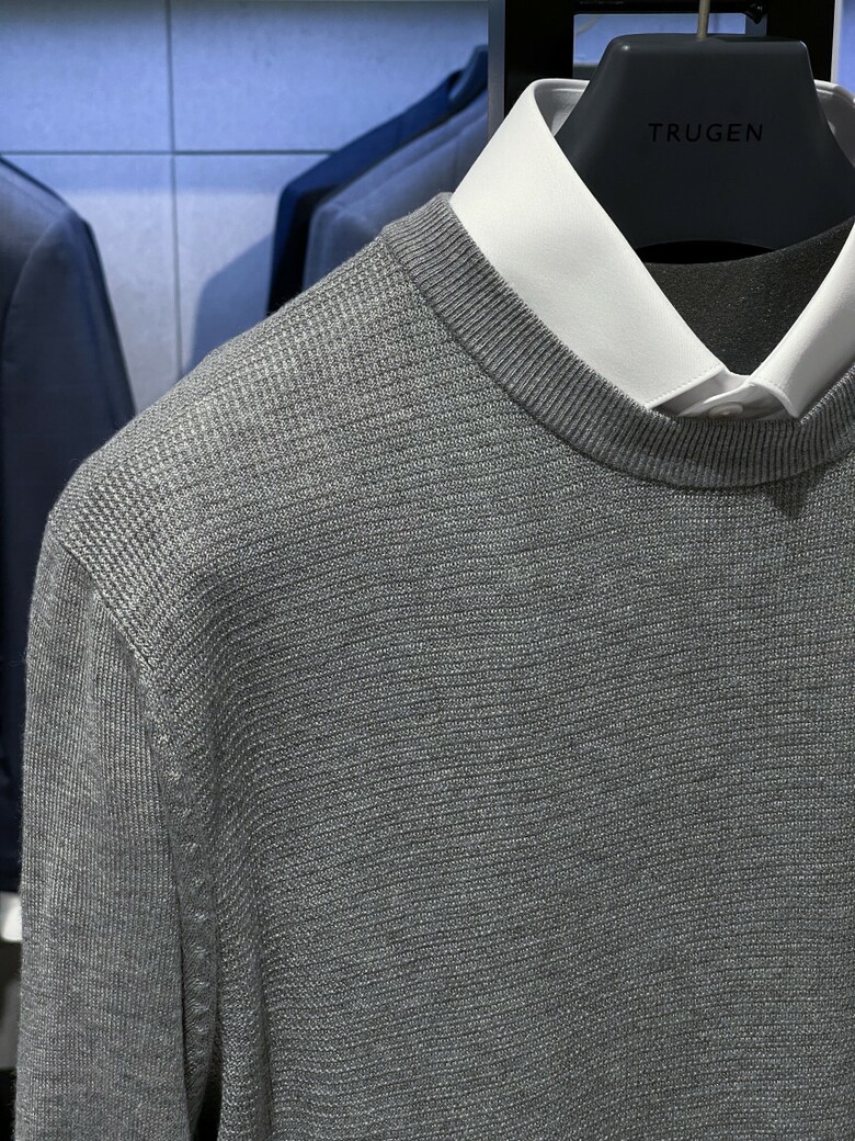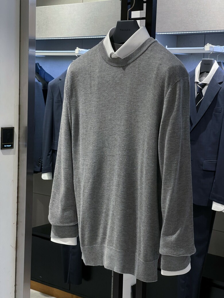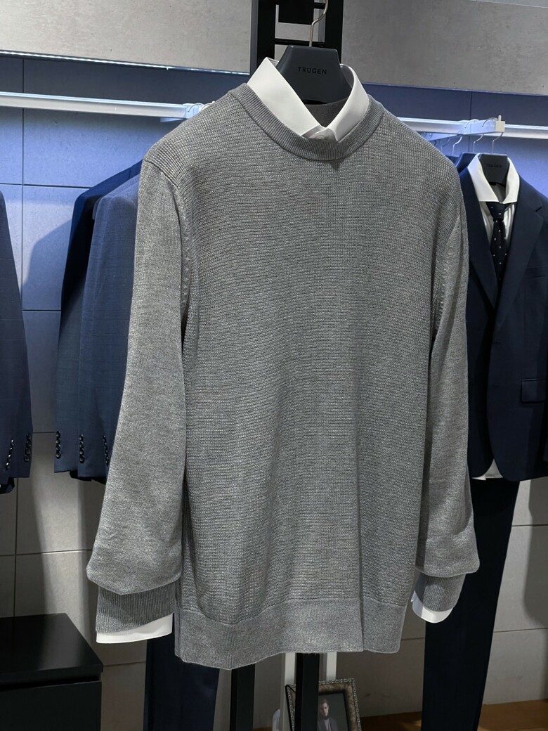 트루젠 (캐시미어+) 그레이 라운드넥 기본핏 니트티셔츠 2344SP100430