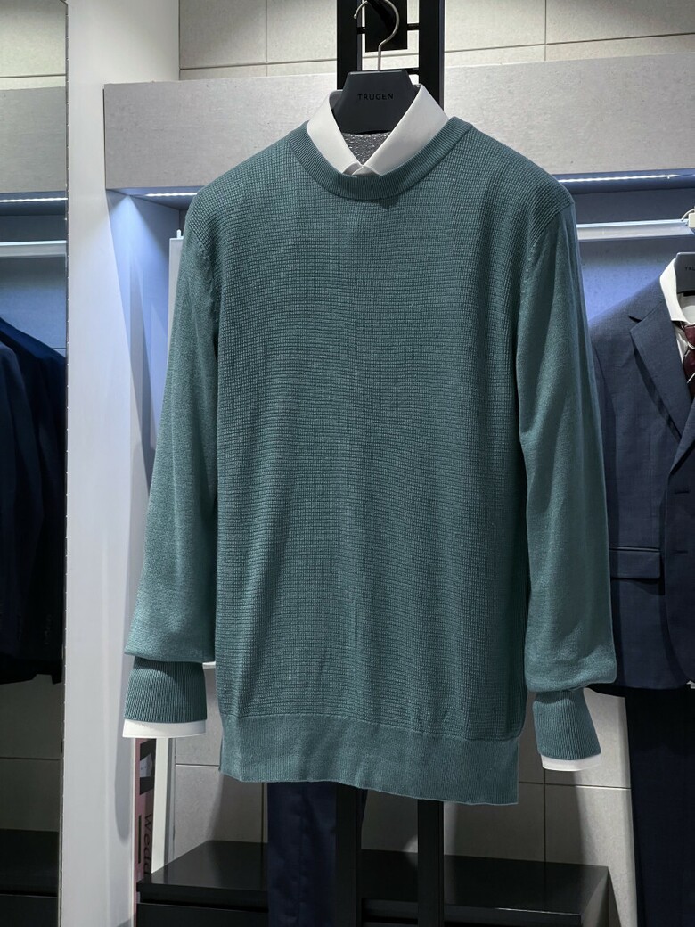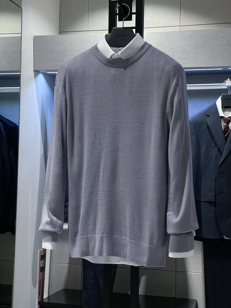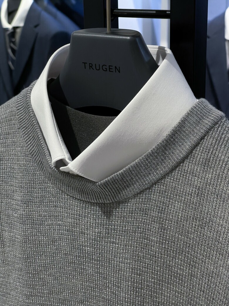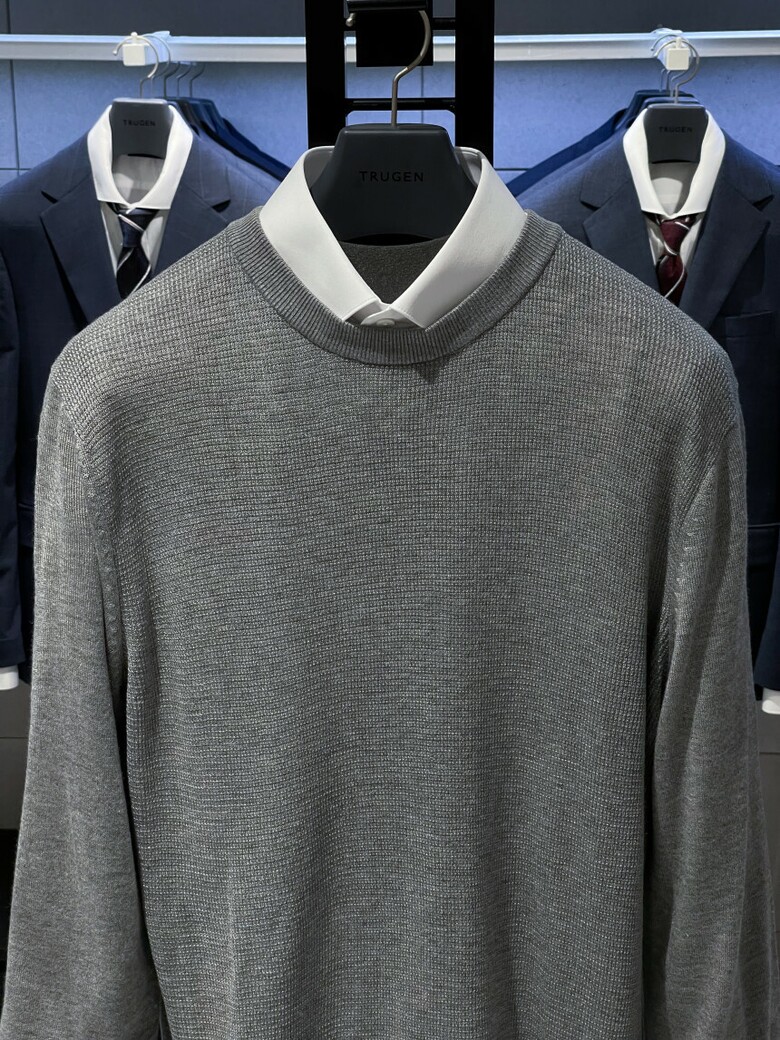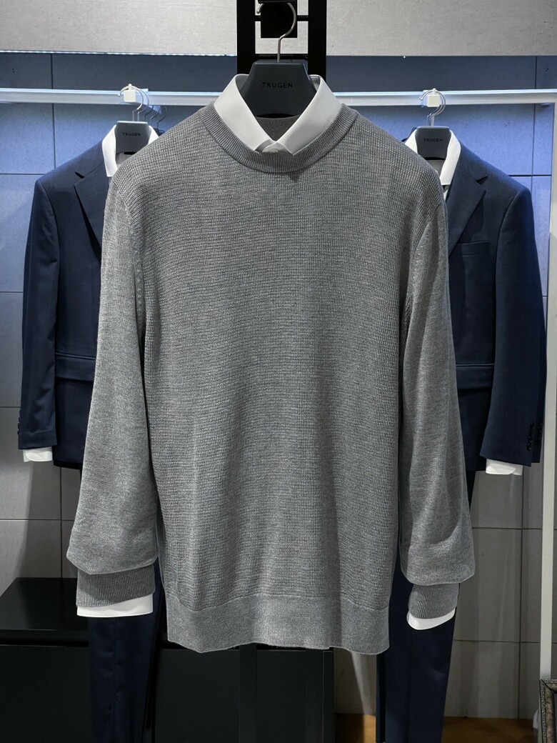 트루젠 (캐시미어+) 그레이 라운드넥 기본핏 니트티셔츠 2344SP100430