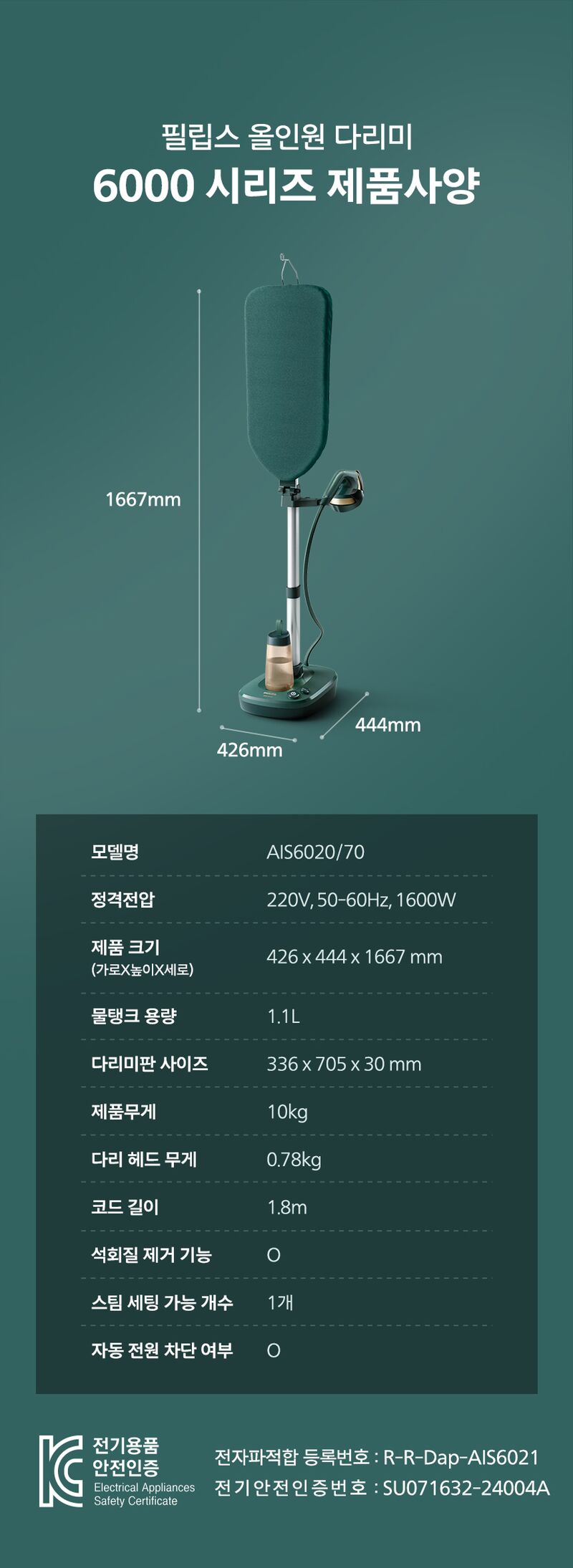 필립스 올인원 다림질 솔루션 올인원 6000 시리즈 AIS6020/70