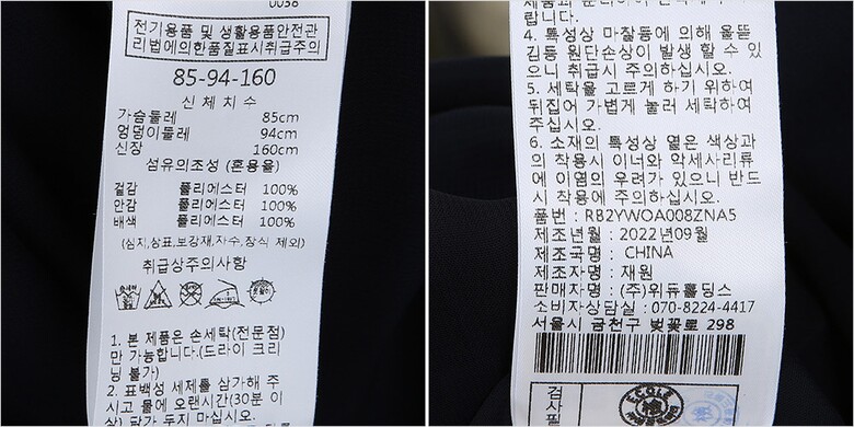 | 6. 세탁방법 및 취급시 주의사항 | 상세페이지 참조 |