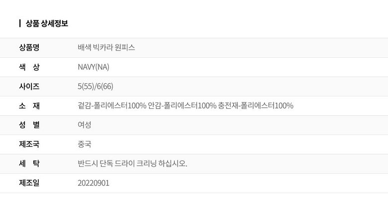 | 2. 색상 | 색상:NAVY(NA) |