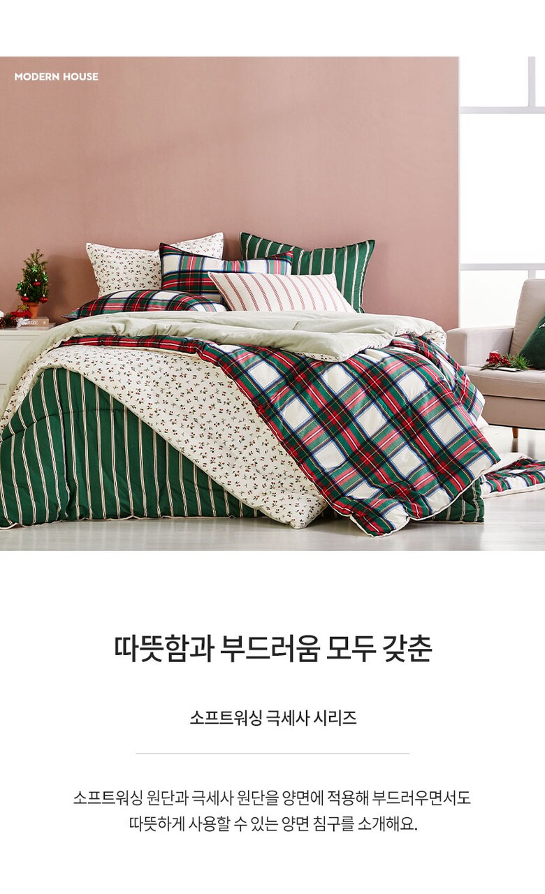 모던하우스 소프트워싱 극세사 차렵이불 퀸 그린 스트라이프 CV0225231