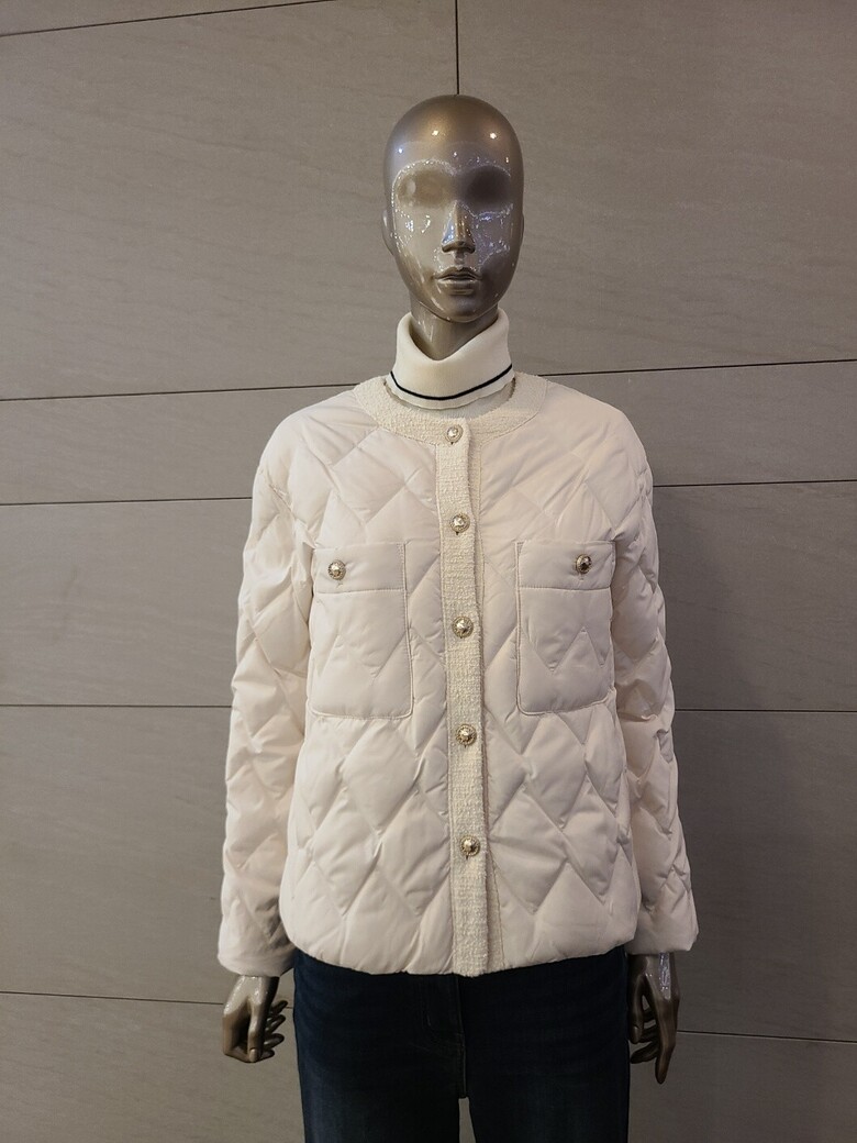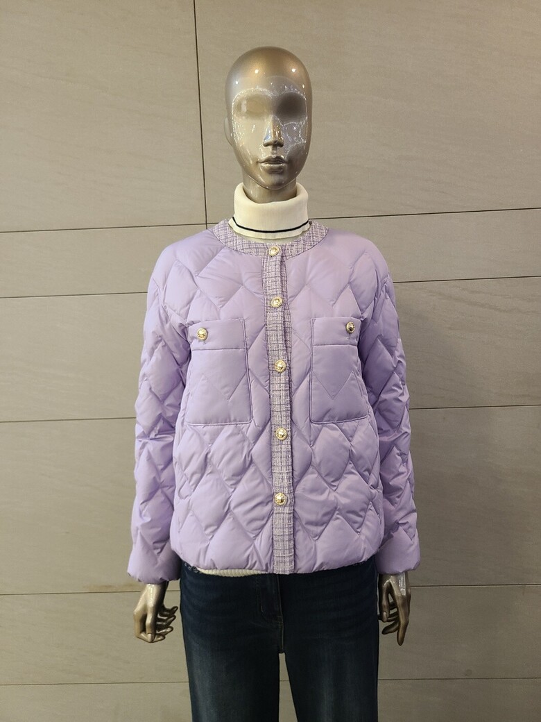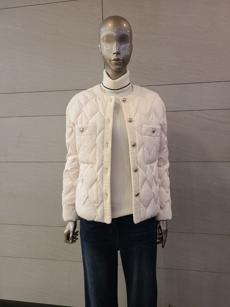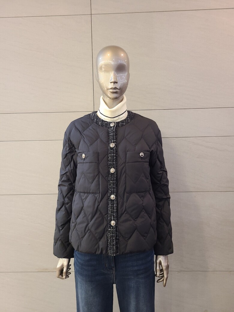 라운드넥 트위드 배색 덕다운 점퍼 JAEW0-WIH210