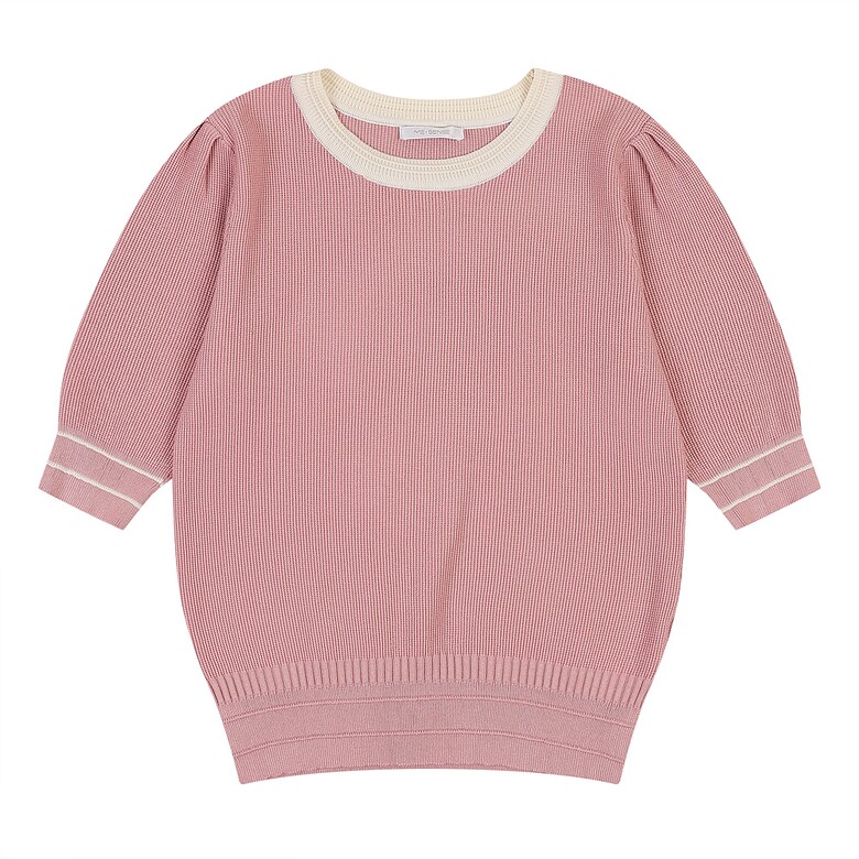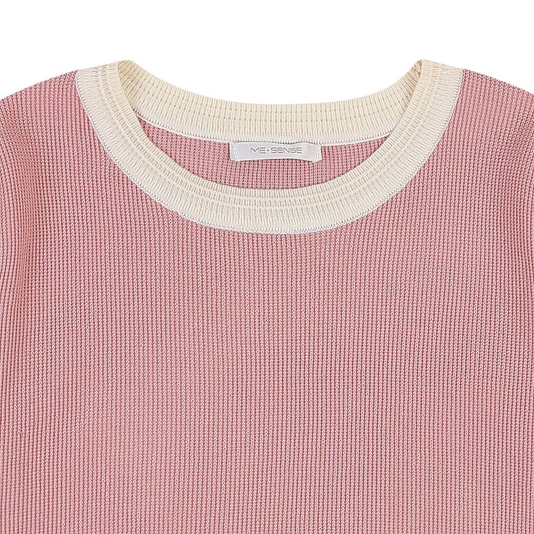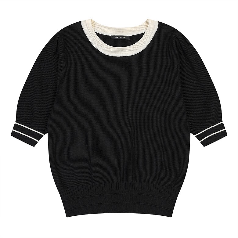 [미센스] 라운드넥 배색 반팔 니트_MB3XKNM315Z