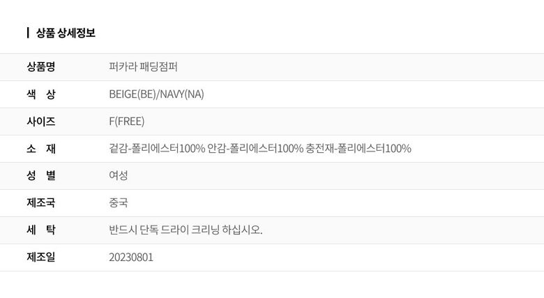 | 2. 색상 | 색상:BEIGE(BE)/NAVY(NA) |