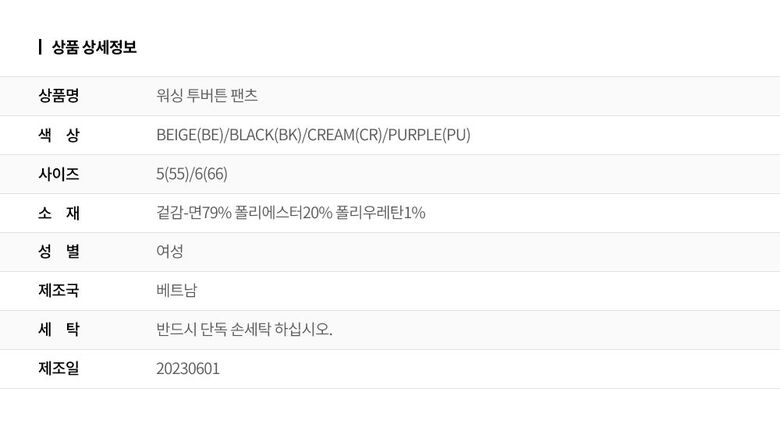 | 6. 세탁방법 및 취급시 주의사항 | 상세페이지 참조 |