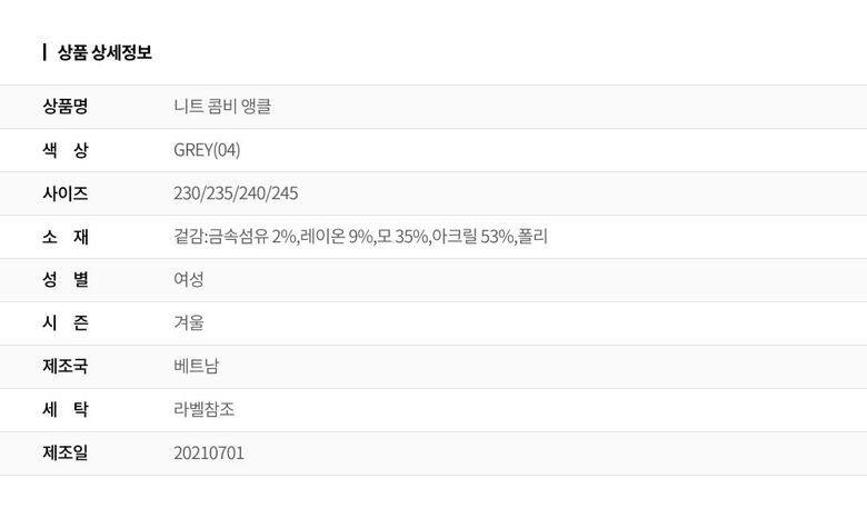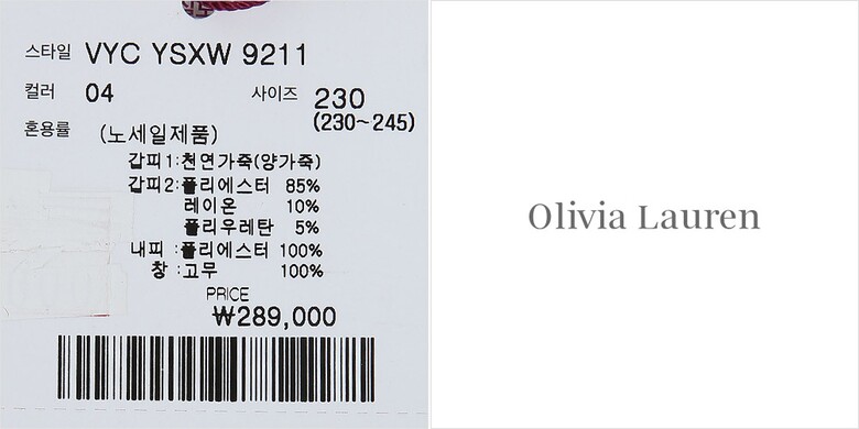 | 1. 제품 소재 (운동화인 경우에는 겉감, 안감을 구분하여 표시) | 갑피1:천연가죽(양가죽) 갑피2:폴리에스터85% 폴리우레탄5% 레이온10% 내피:폴리에스터100% 창:고무100% |