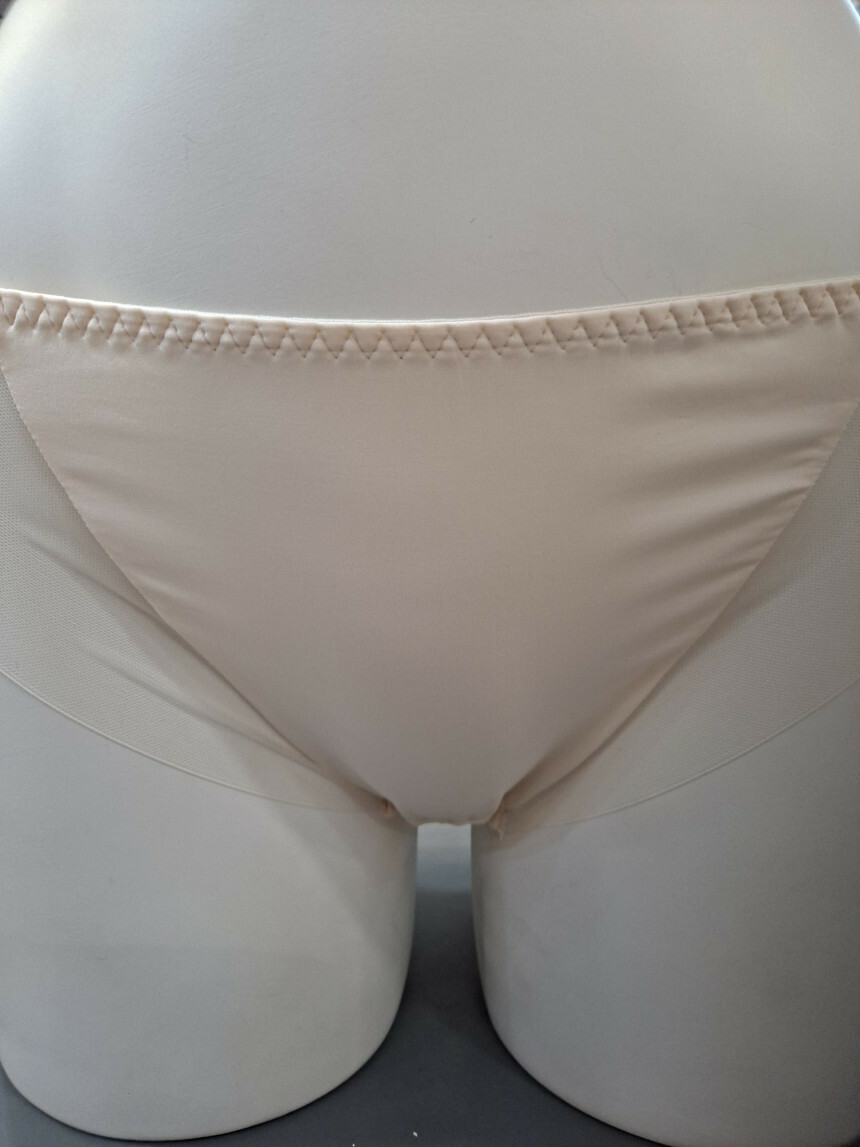앞판은 망소재의 제품으로 뒷판은 HEM을 매치하여 겉으로 라인이 드러나지 않아 다양한 아우터와 착용하기 좋은 제품. 햄라인이 앞부분까지 넘어오는 스타일로 여성스러운 핏을 선사함.