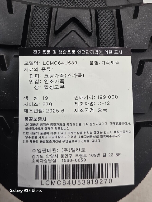 | 1. 제품 소재 (운동화인 경우에는 겉감, 안감을 구분하여 표시) | 상품상세참조 |