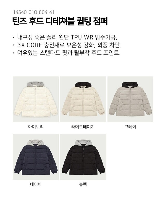 | 1. 제품 소재 (섬유의 조성 또는 혼용률을 백분율로 표시, 기능성인 경우 성적서 또는 허가서) | 상품상세참조 |