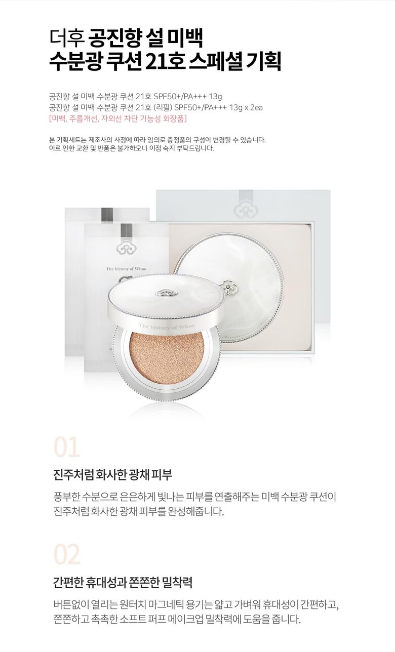 [더후] 공진향 설 미백 수분광 쿠션 21호 스페셜 세트 (쿠션 본품+리필2개)