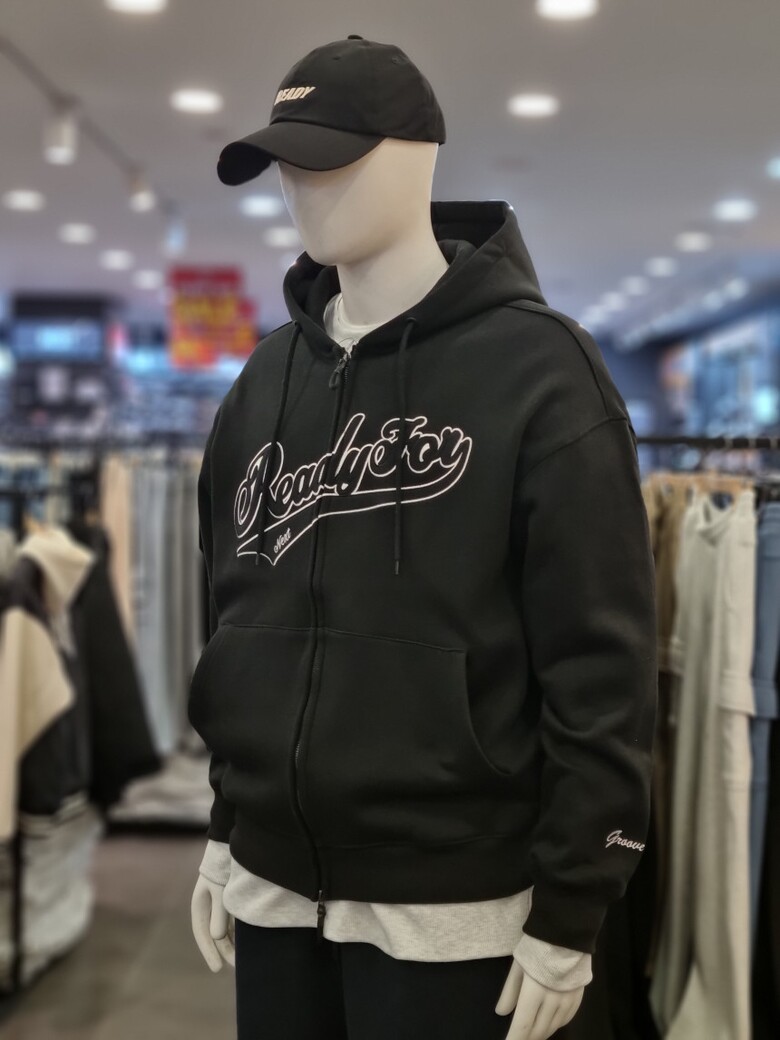 자수 로고 기모 후드 집업입니다