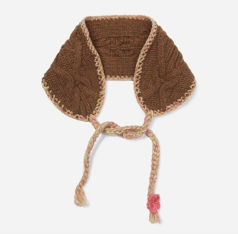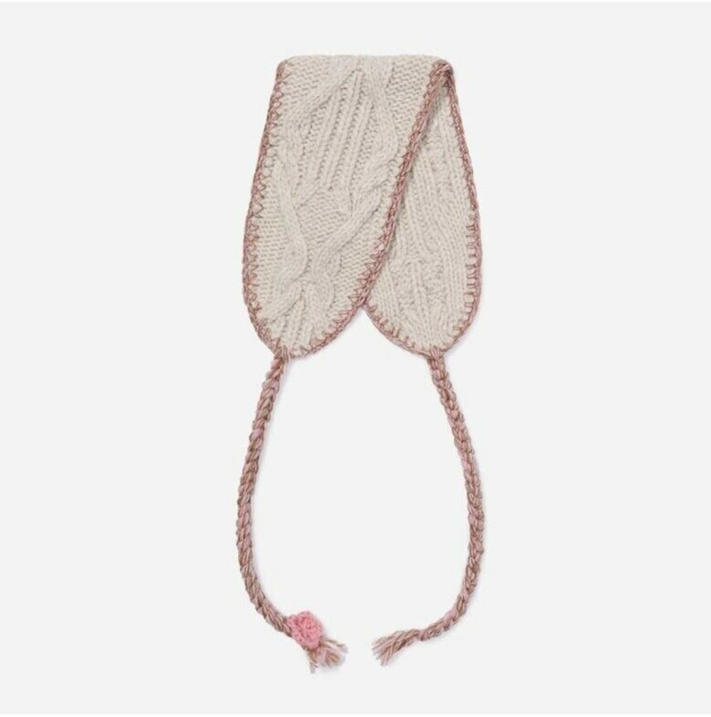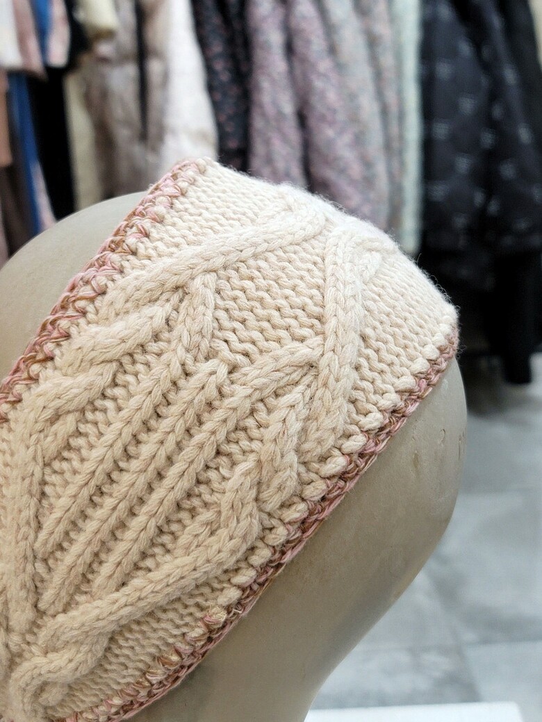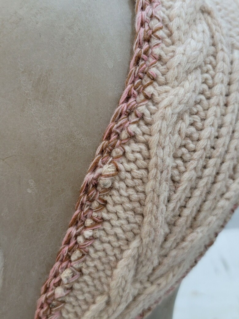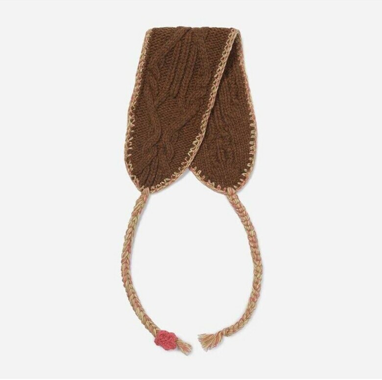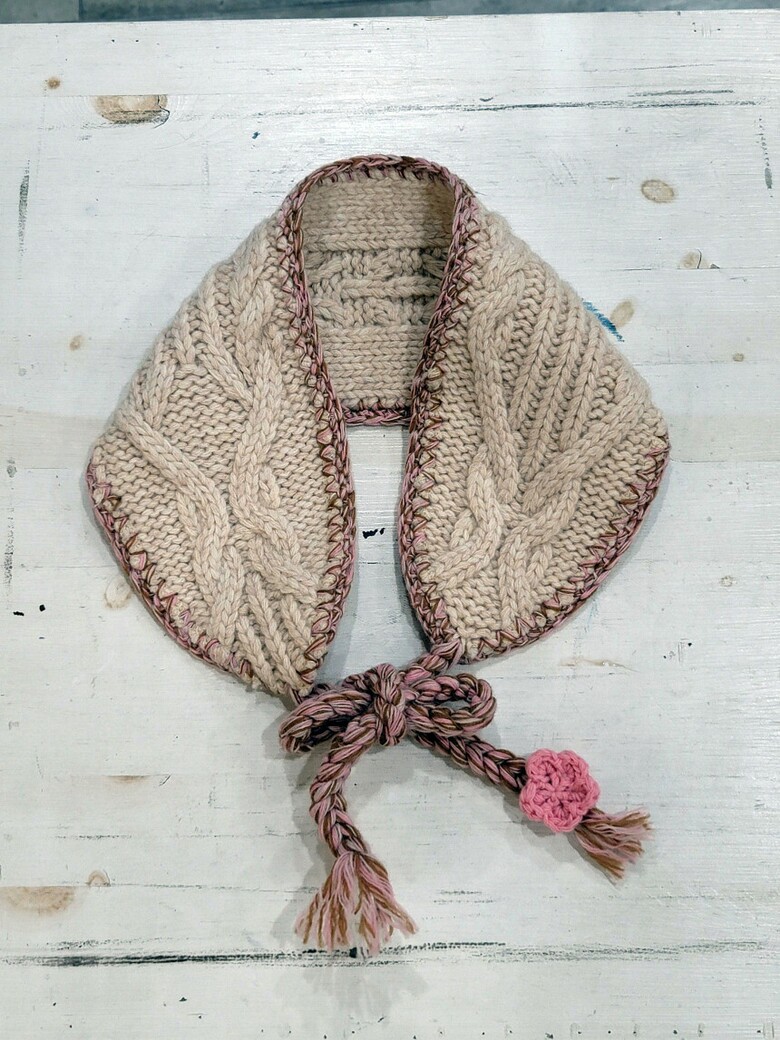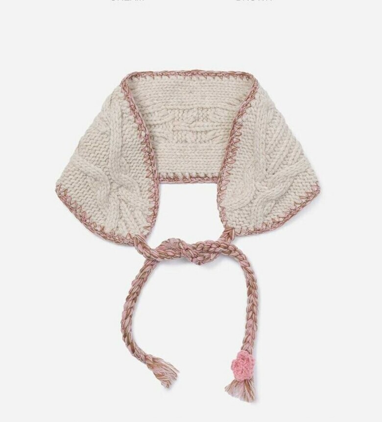 두께감 있는 케이블 조직의 울 소재 니트 스카프입니다.