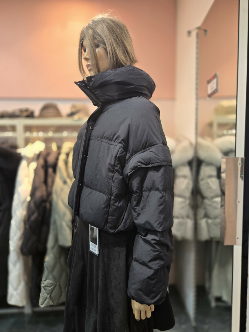 등판 레터링 볼륨 소매 크롭 다운점퍼 EQ4NZ-061