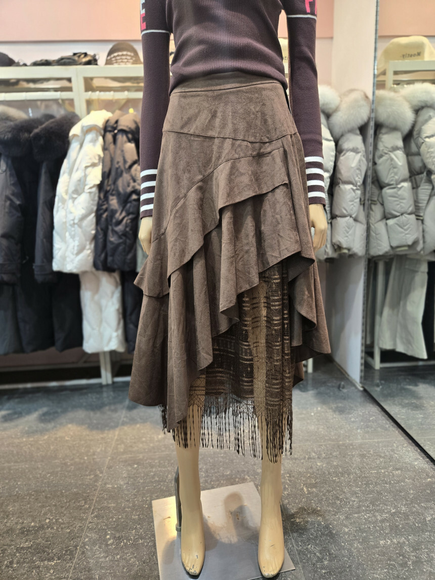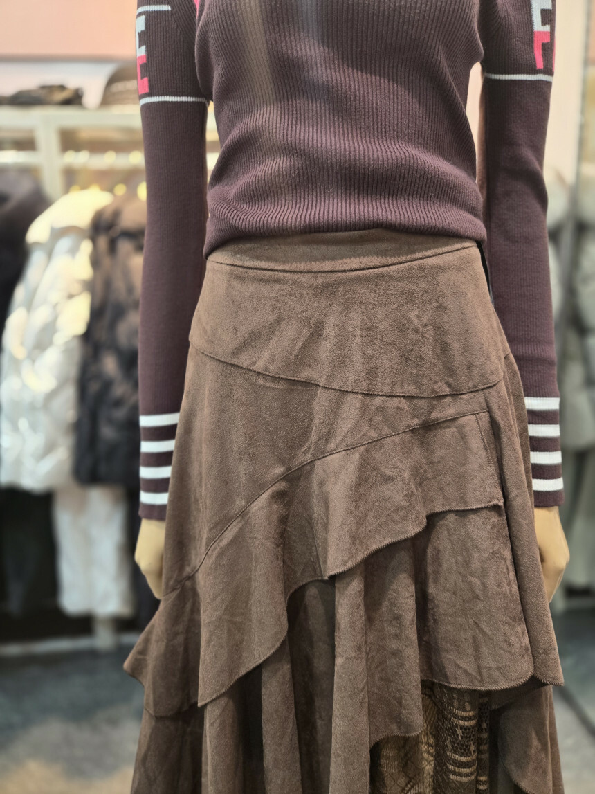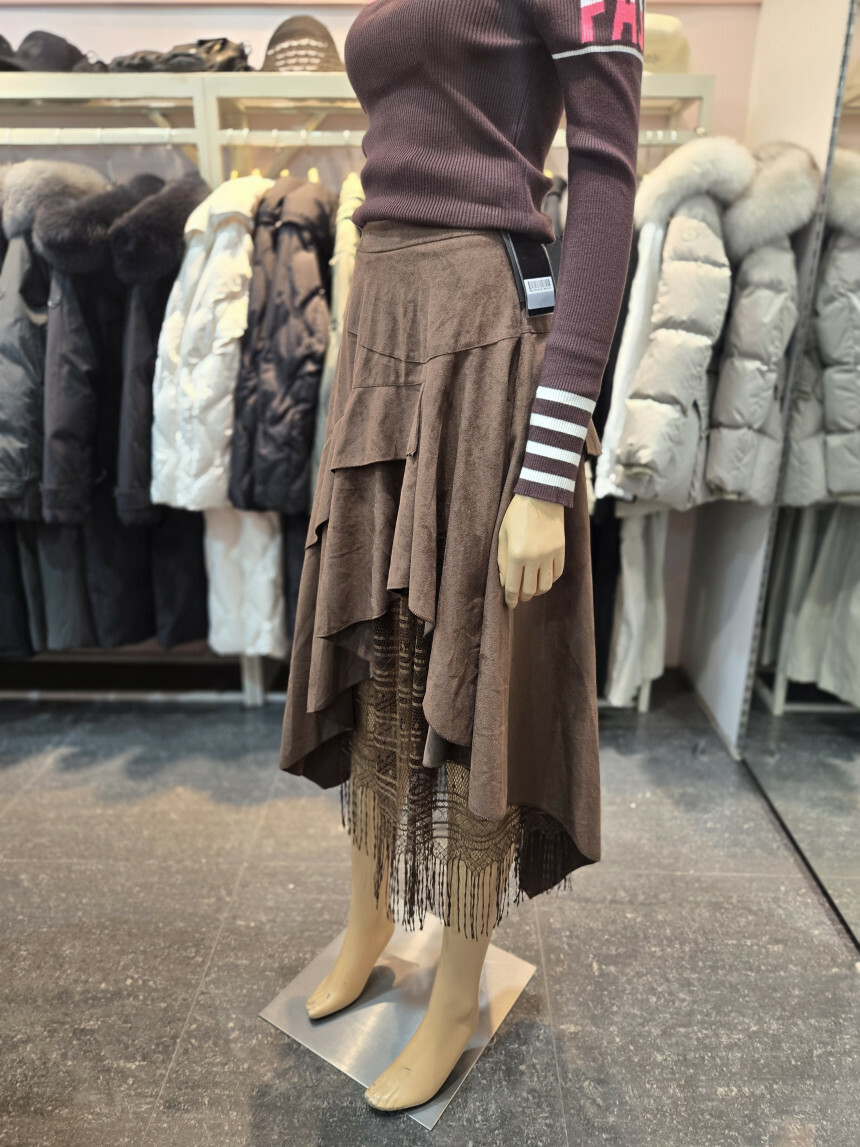 레이스 배색 인조 스웨이드 스커트 ER4BX-015