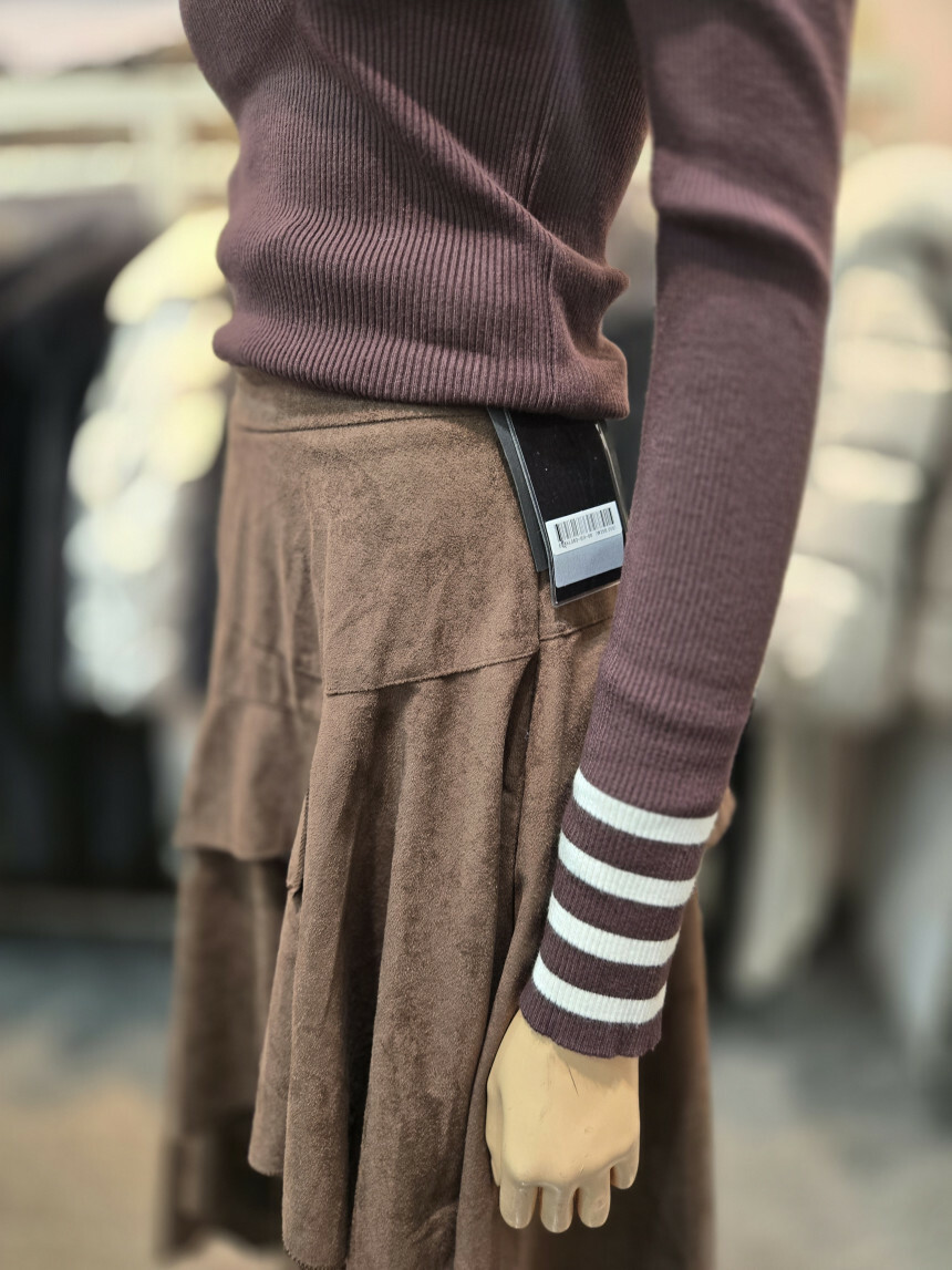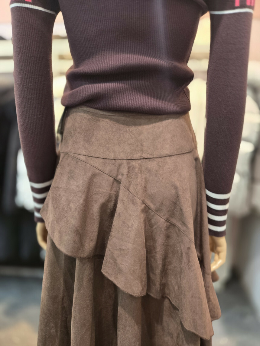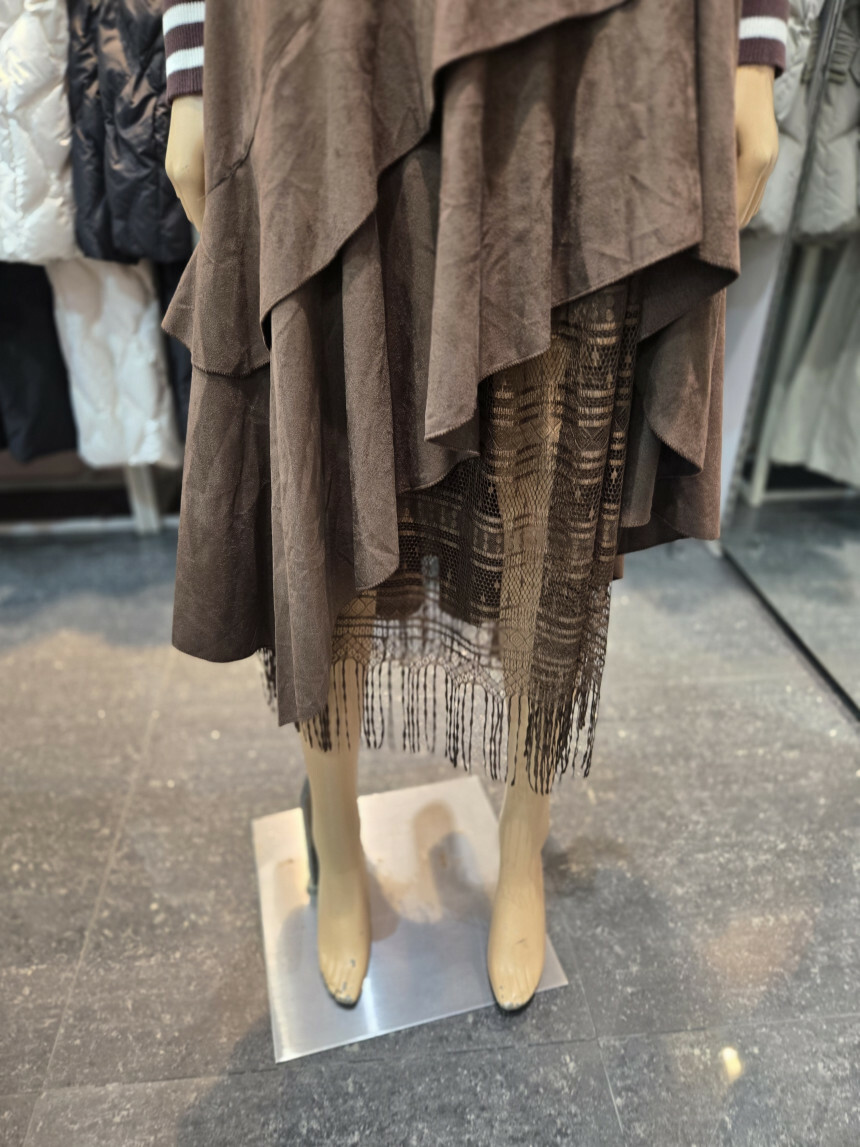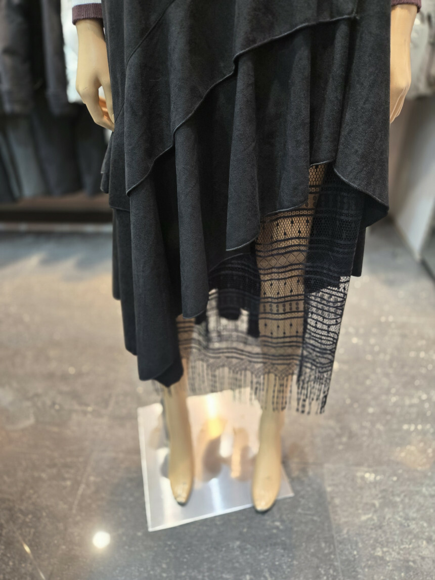 레이스 배색 인조 스웨이드 스커트 ER4BX-015