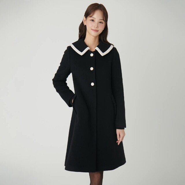 배색 콤비 빅 카라 코트S244m703