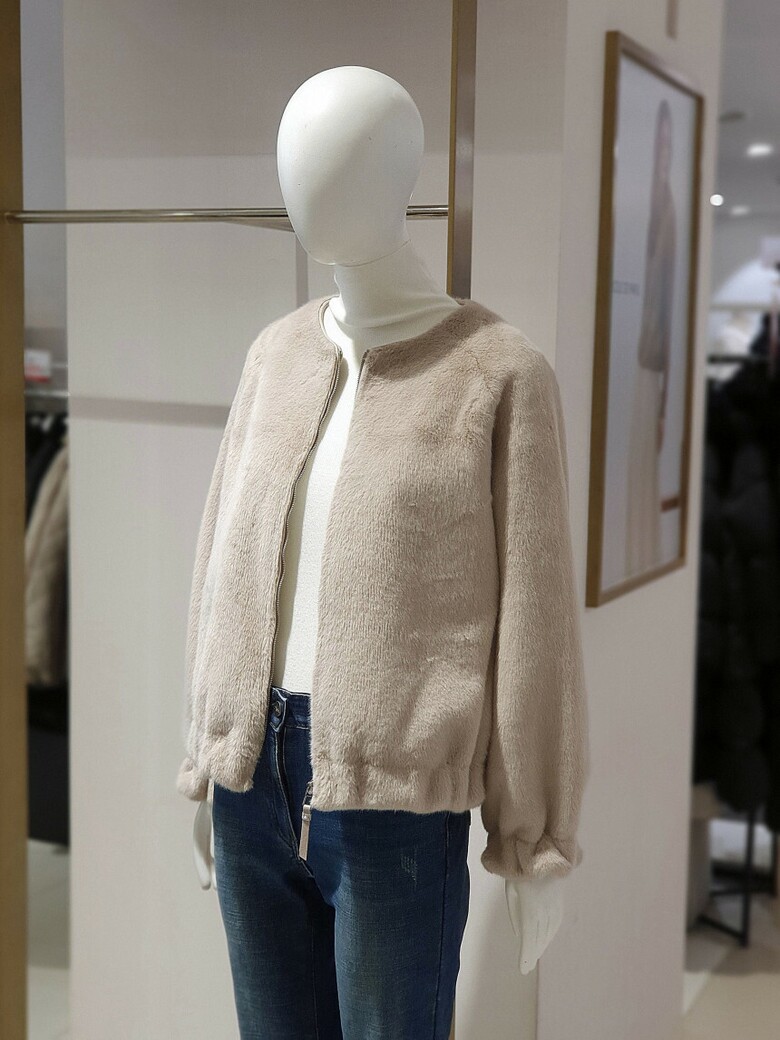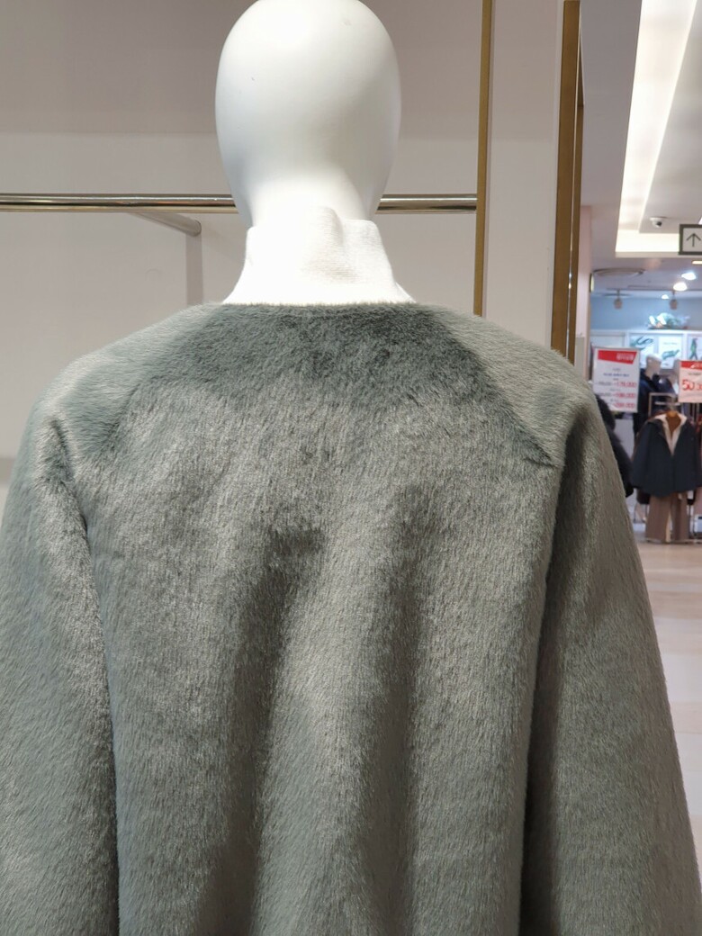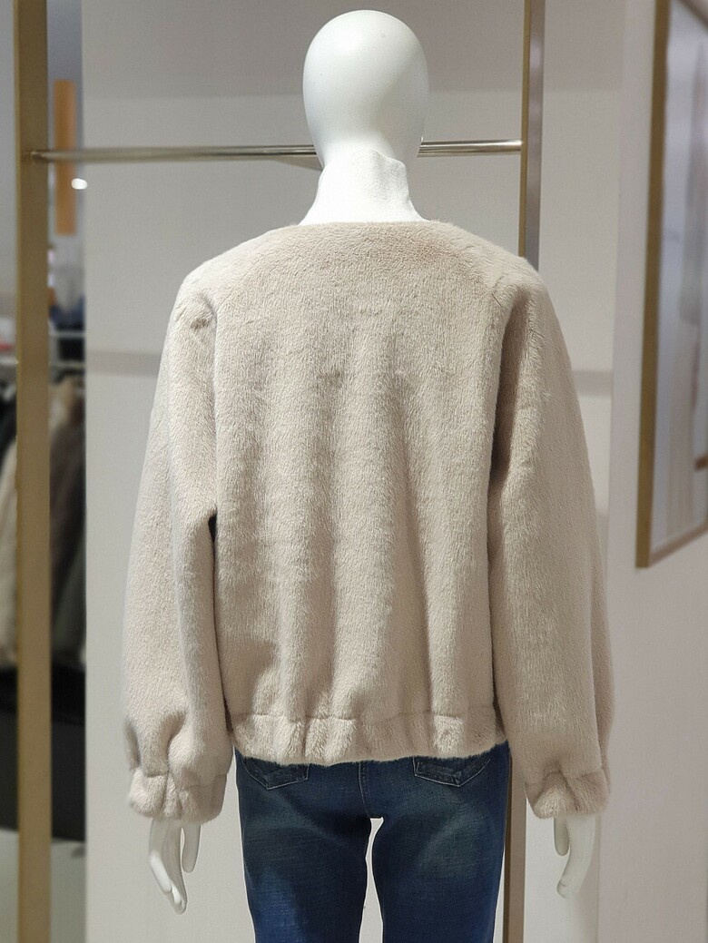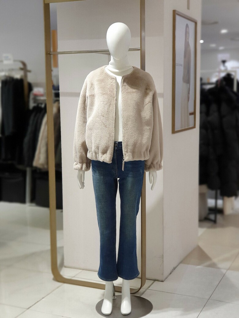 포근한 터치감의 부드러운 페이크 퍼 무스탕 재킷입니다.