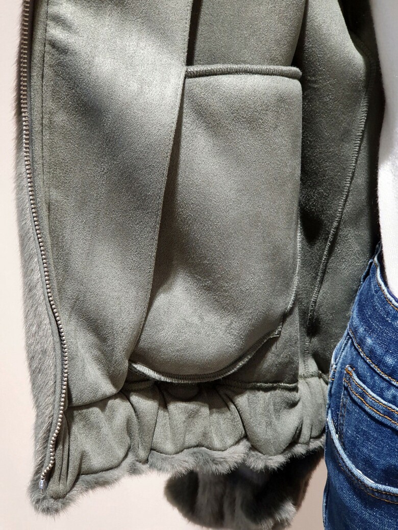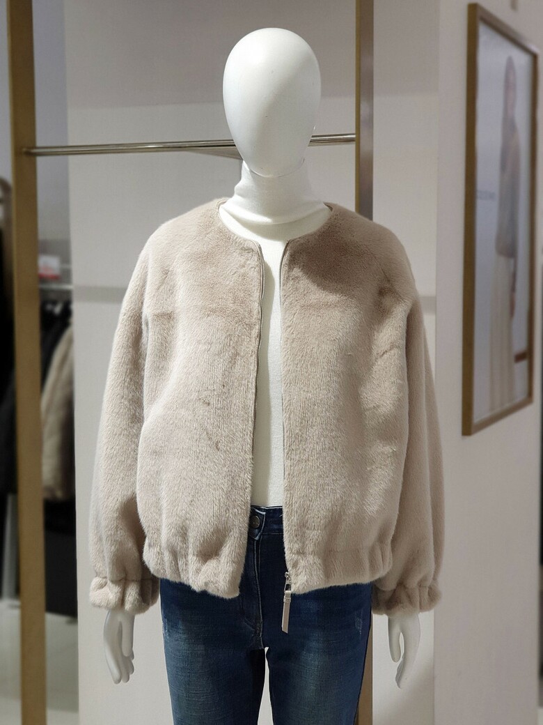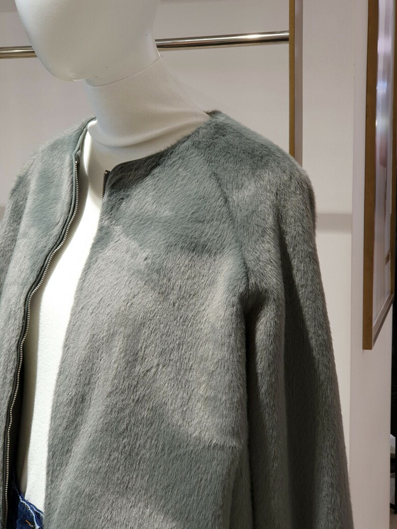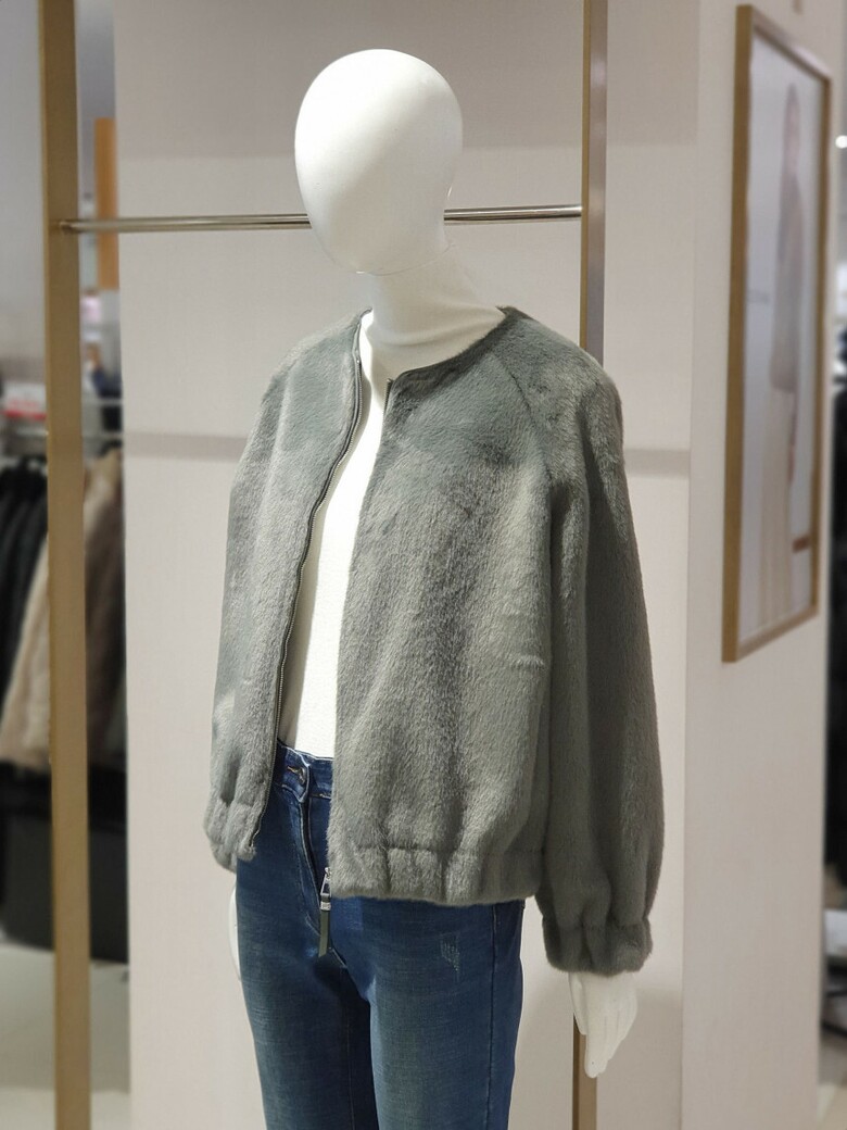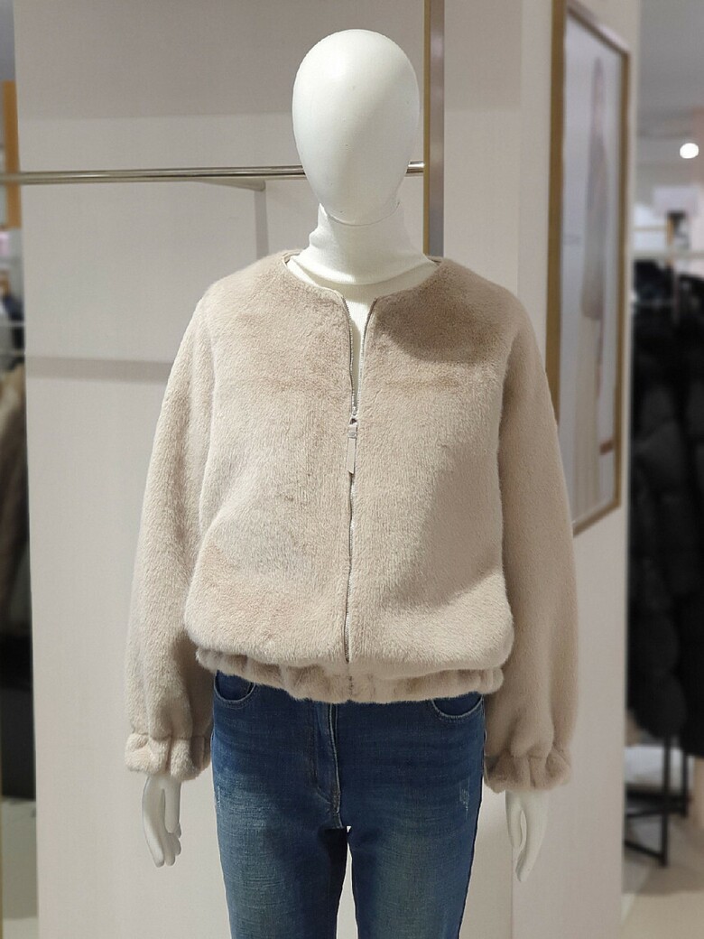 포근한 터치감의 부드러운 페이크 퍼 무스탕 재킷입니다.