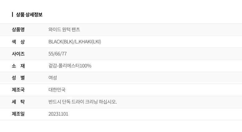 | 6. 세탁방법 및 취급시 주의사항 | 상세페이지 참조 |