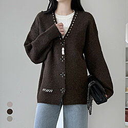 KARRA 스티치루즈브이넥가디건_A5F0355